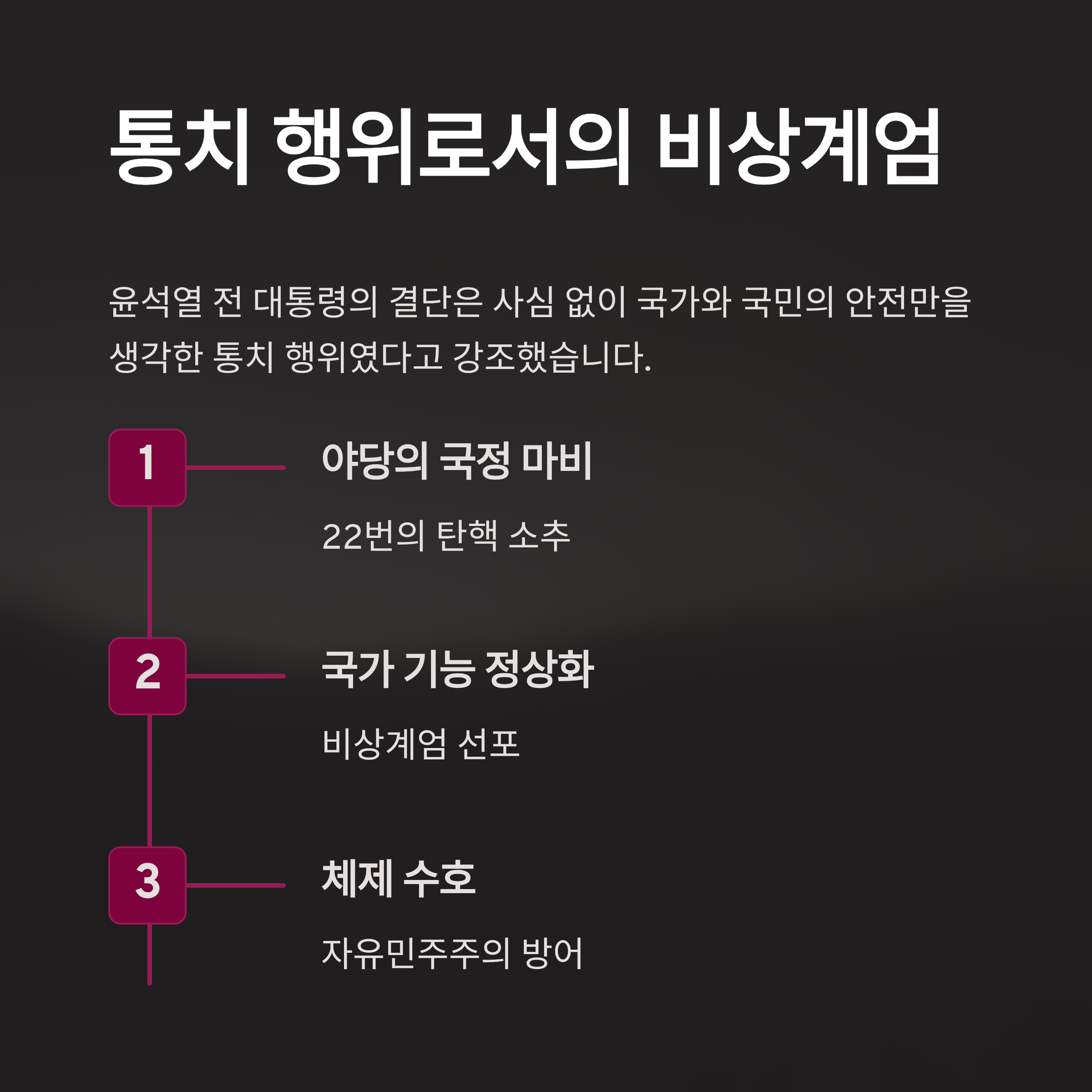 - 2. 핵심요약: 내란 혐의 부인과 부하 보호, 그리고 체제 수호의 의지