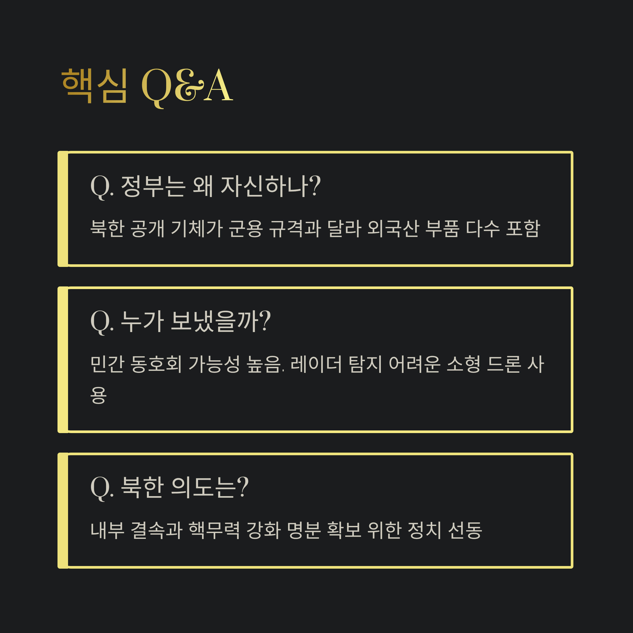 이번 사건은 레이더에 탐지되지 않는 소형 무인기가 국경을 넘나드는 심각한 안보 공백 문제를 명확히 드러냈습니다.