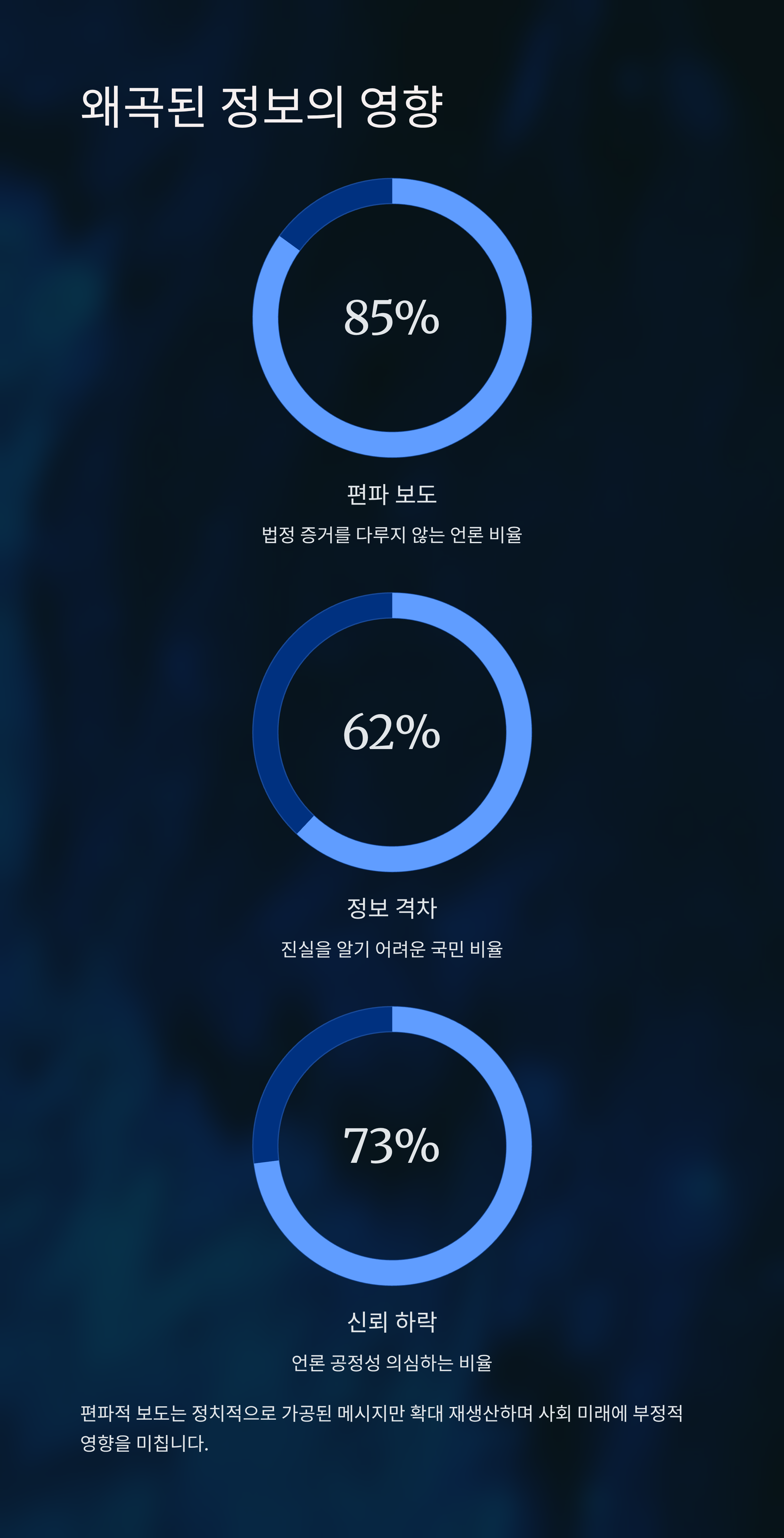 편파적 보도는 정치적 갈등을 심화시키고, 국민 간 신뢰를 약화시키는 결과를 초래합니다. 사건의 본질은 드러나지 않고, 정치적으로 가공된 메시지들만이 확대 재생산되는 현실이 우리 사회의 미래에 부정적 영향을 미칠 수 있습니다.