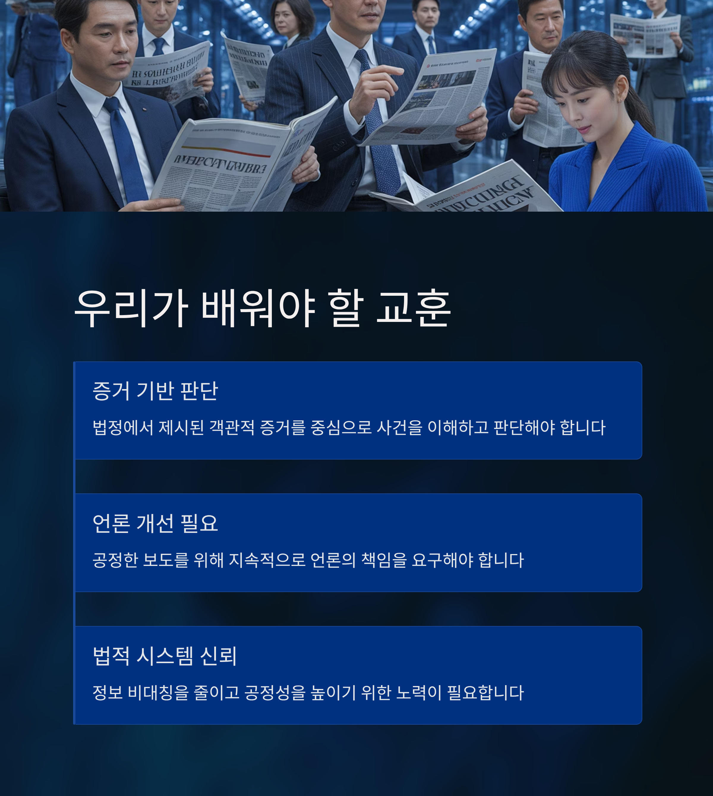 - 본 사건은 대한민국 정치와 언론의 신뢰 문제를 지적하는 계기가 되고 있습니다.