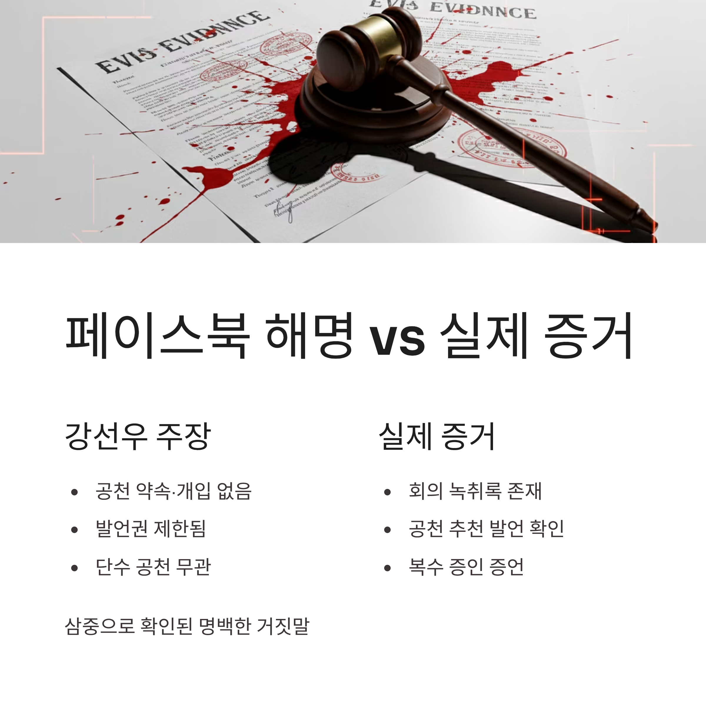 거짓 해명: "공천 개입 없었다"는 주장과 달리, 회의에서 특정 후보를 적극 추천한 녹취록 존재