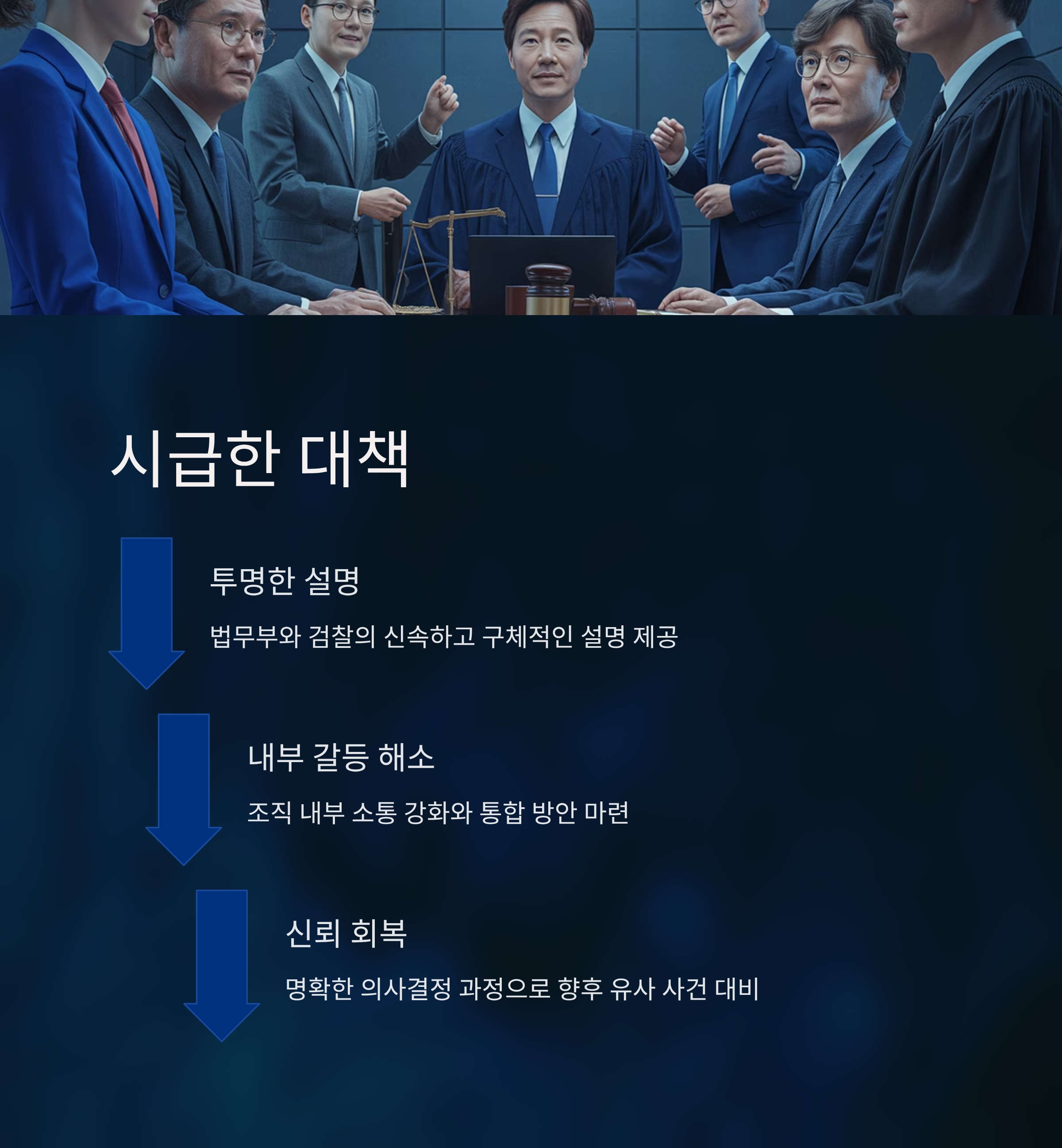 대장동 사건의 항소 포기 결정은 한국 사회 법적 정의와 검찰 시스템의 신뢰성에 중대한 시험대가 되고 있습니다. 이번 결정이 국민들에게 투명성과 공정성을 담보하지 못했다고 판단되는 상황에서, 법무부와 검찰은 신속히 구체적인 설명을 내놓아야 합니다. 특히, 조직 내부 갈등을 해소하고, 명확한 의사결정 과정을 통해 향후 유사 사건에서 신뢰를 잃지 않도록 대책 마련이 시급합니다.