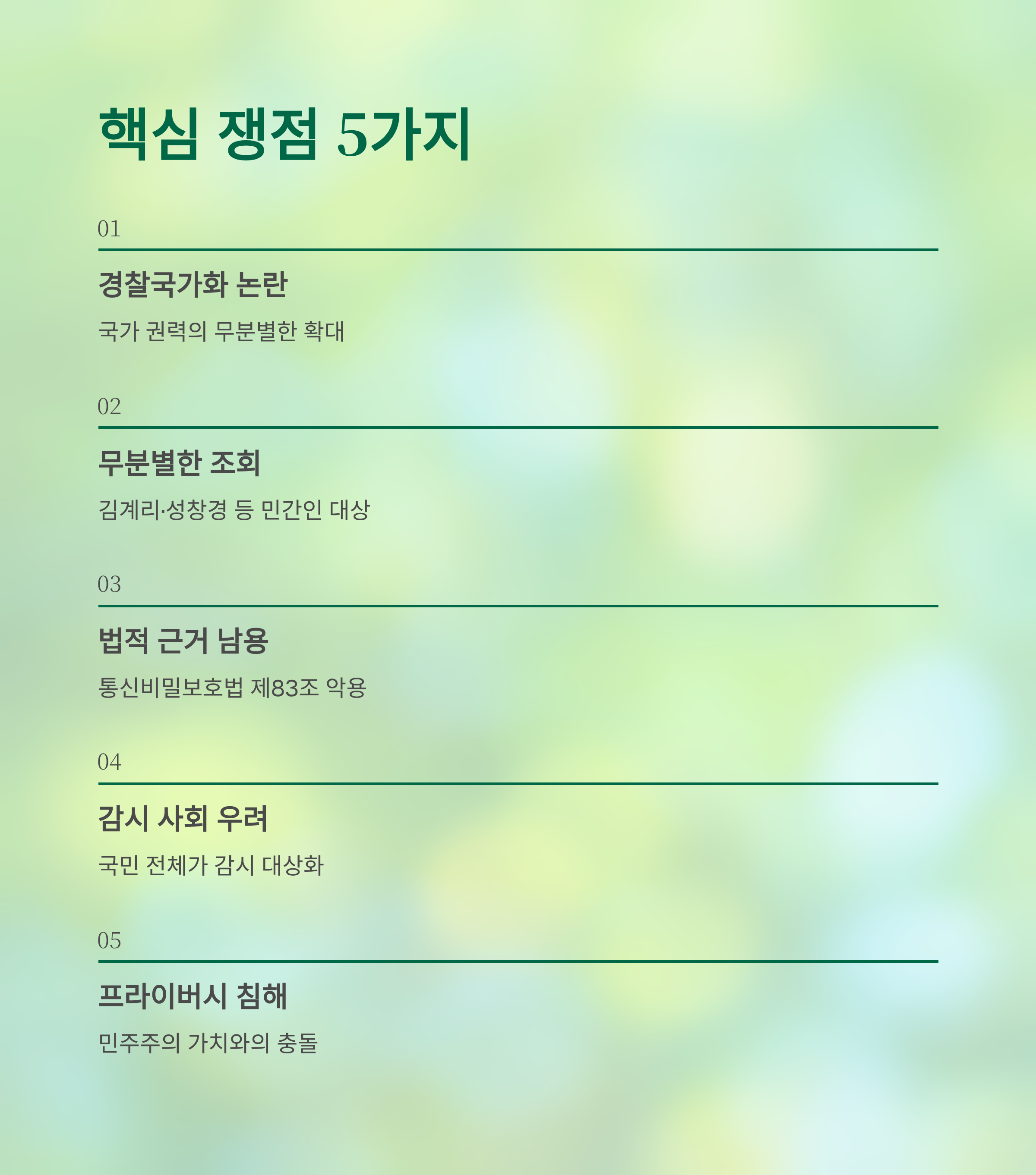 - 통신 기록 수집은 국민의 감시 우려를 증폭시키고 있다.
