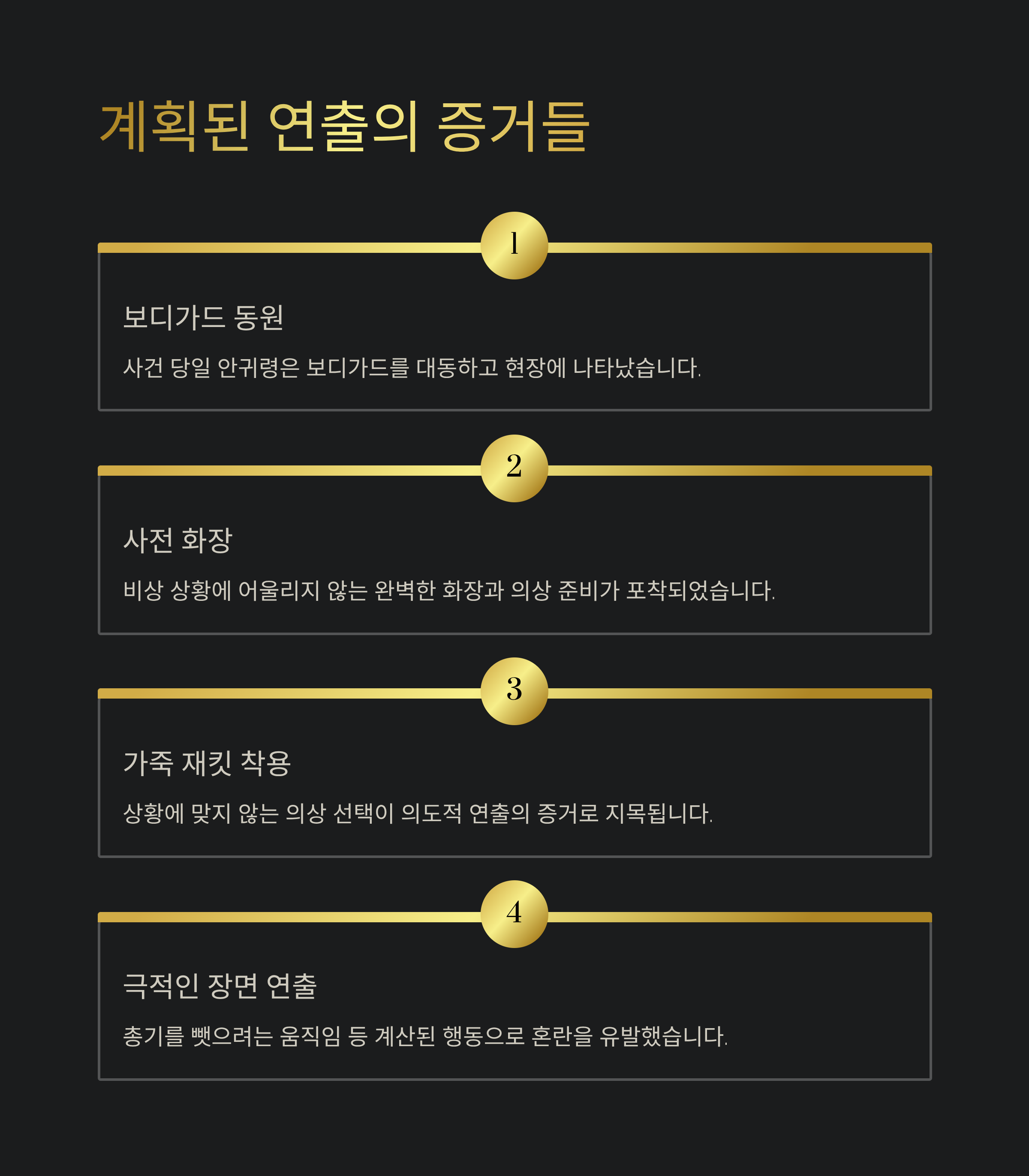 | Q. 사건이 계획되었다는 핵심 증거는 무엇인가요? |