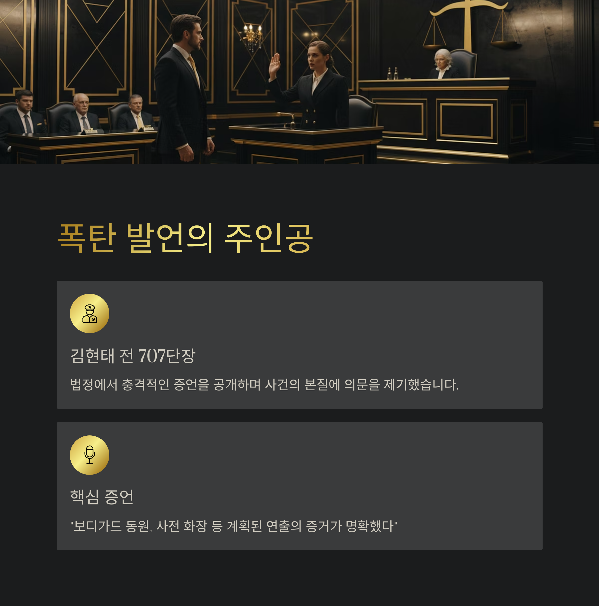 법정에서 제기된 '계획된 연출' 의혹은 앞으로의 재판 과정을 통해 그 진위가 명명백백히 밝혀져야만 합니다.