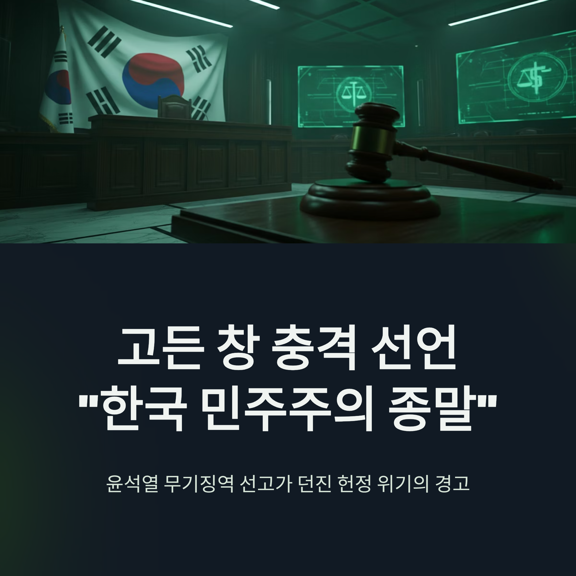 2026년 2월, 윤석열 전 대통령에 대한 내란 혐의 1심 선고 공판에서 법원이 무기징역을 선고하며 국내외에 큰 충격을 주고 있습니다. 이재명 정부 출범 이후 진행된 이번 재판은 전 세계가 주목하는 가운데 생중계되었으나, 결과는 사법 정의에 대한 근본적인 의문을 남겼습니다. 특히 한반도 전문가인 고든 창(Gordon Chang)은 이번 판결을 두고 "한국 민주주의의 종말(The End of South Korea's Democracy)"이라며 강력히 비판했습니다. 본 글에서는 고든 창의 분석을 토대로 이번 판결이 갖는 법적, 정치적 문제점과 대한민국 헌정 질서에 미칠 파장을 심도 있게 분석합니다.