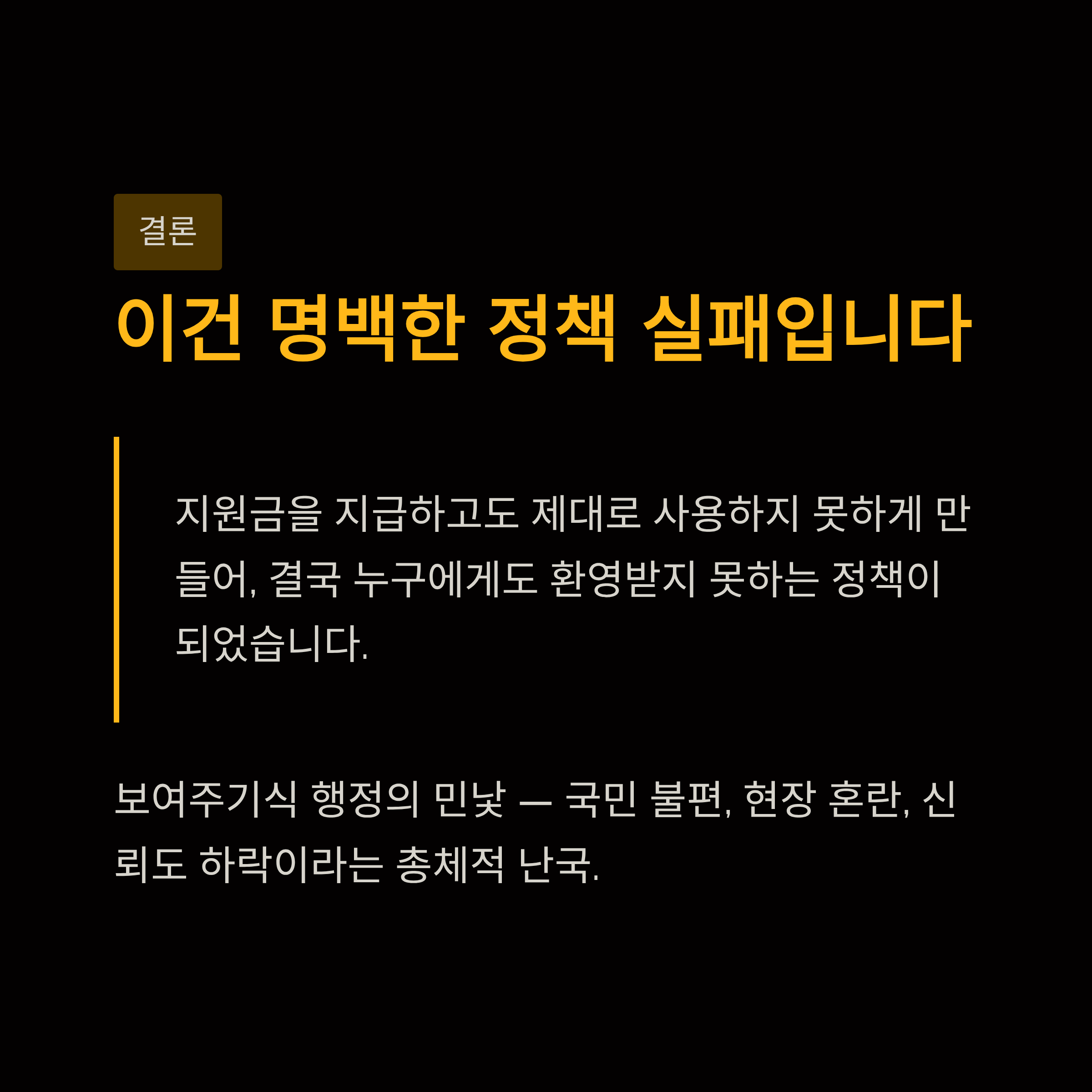 | 예상 결과 | 국민 불편 가중 및 정책 신뢰도 하락 |