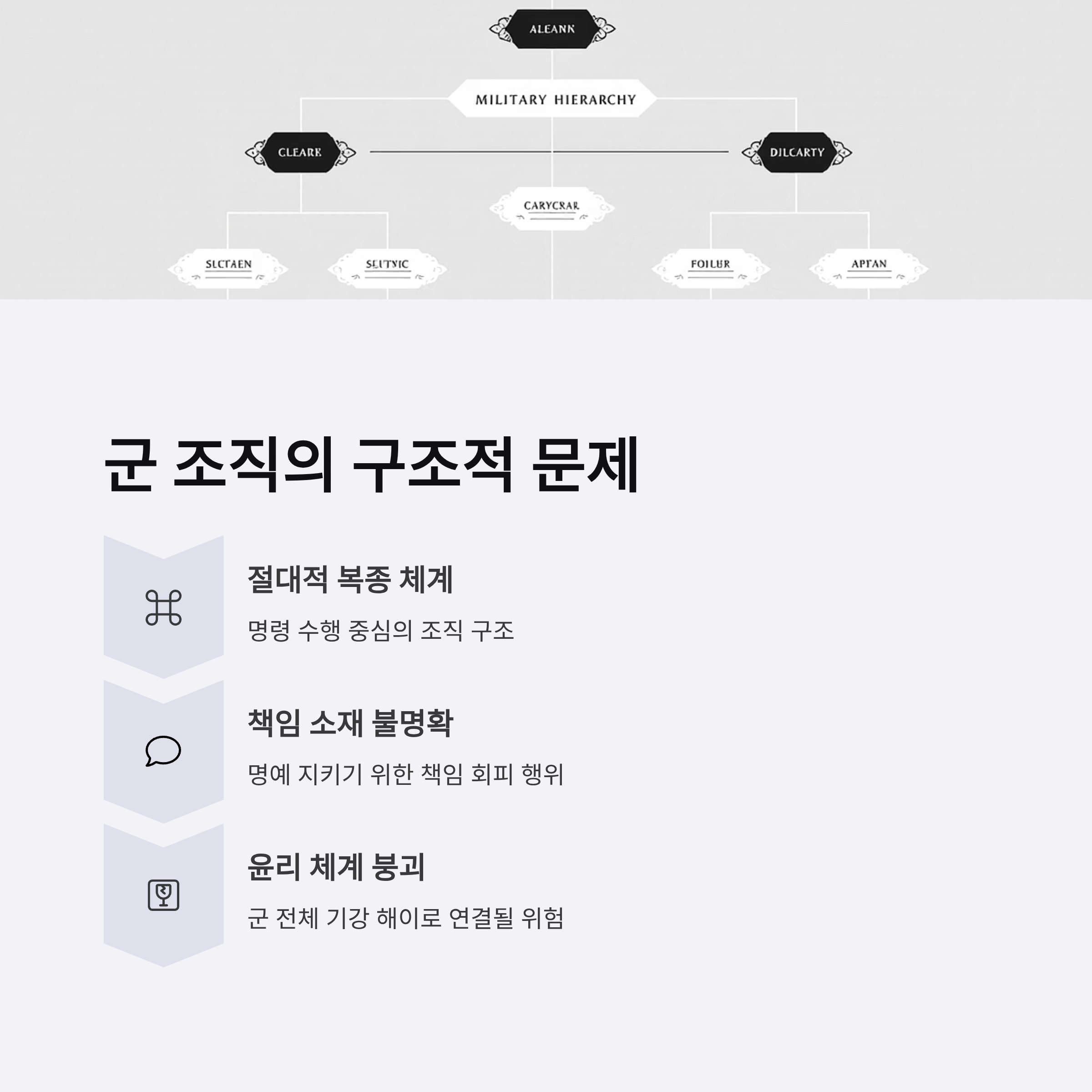군 조직의 리더십 결여와 이를 보완하기 위한 개선 방안 논의가 시급합니다.