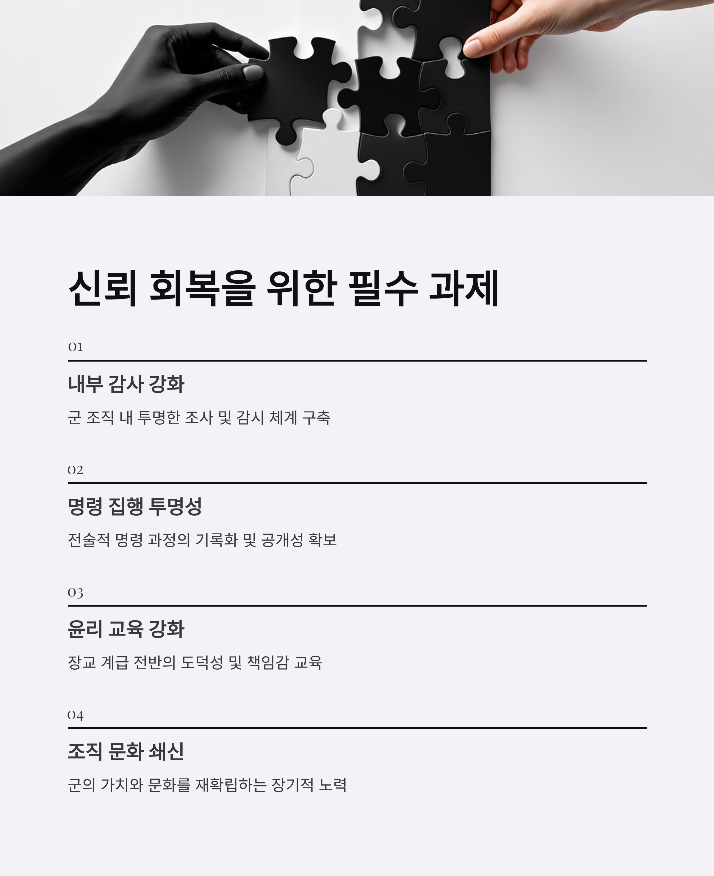 신뢰 회복을 위한 군 조직 내부 개혁