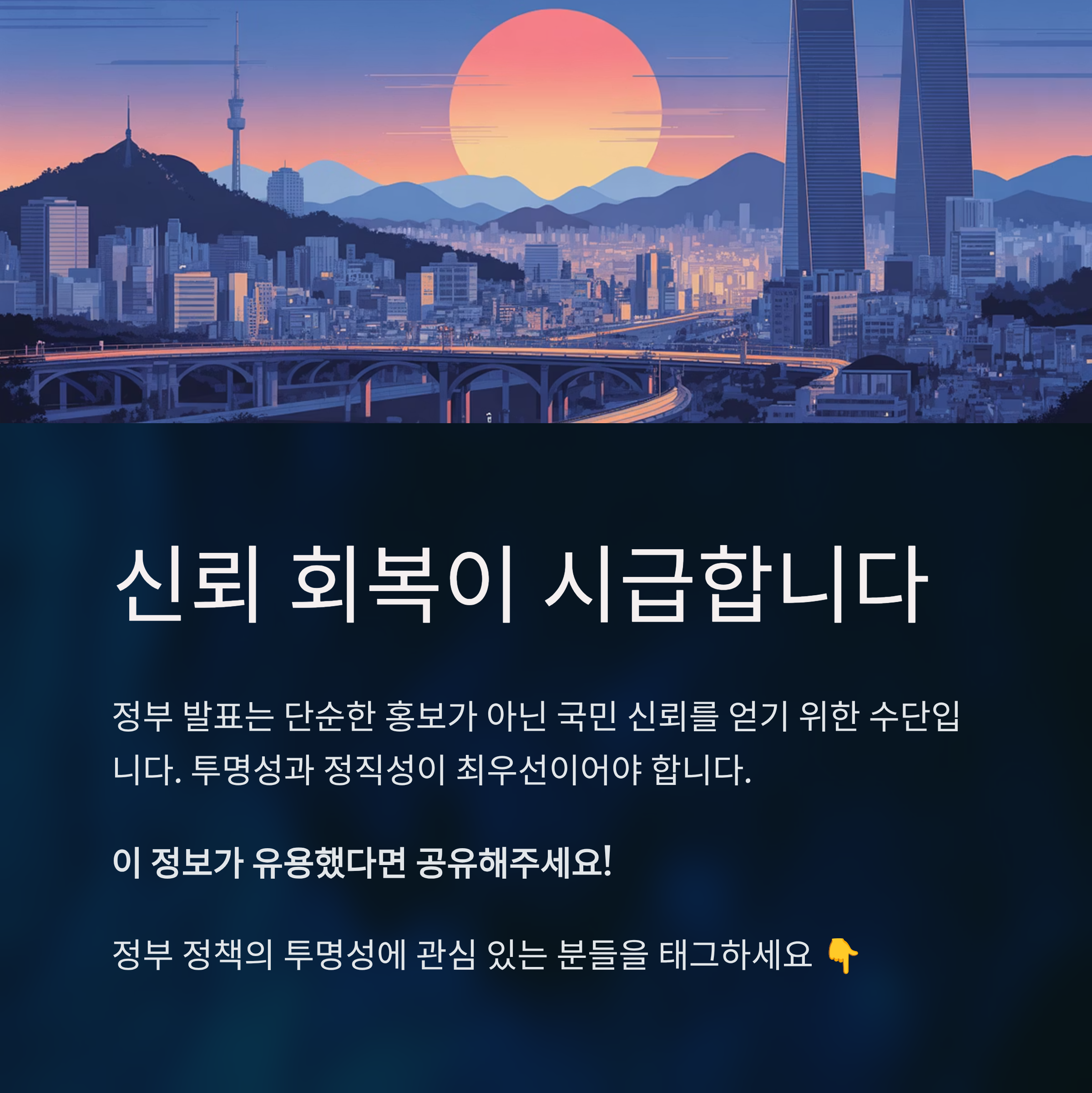 이번 사건은 정부 정책 발표가 단순히 홍보적 의미에 그쳐서는 안 되며, 국민의 신뢰를 얻기 위한 수단임을 다시금 확인시켜준 계기로 삼아야 할 것입니다.