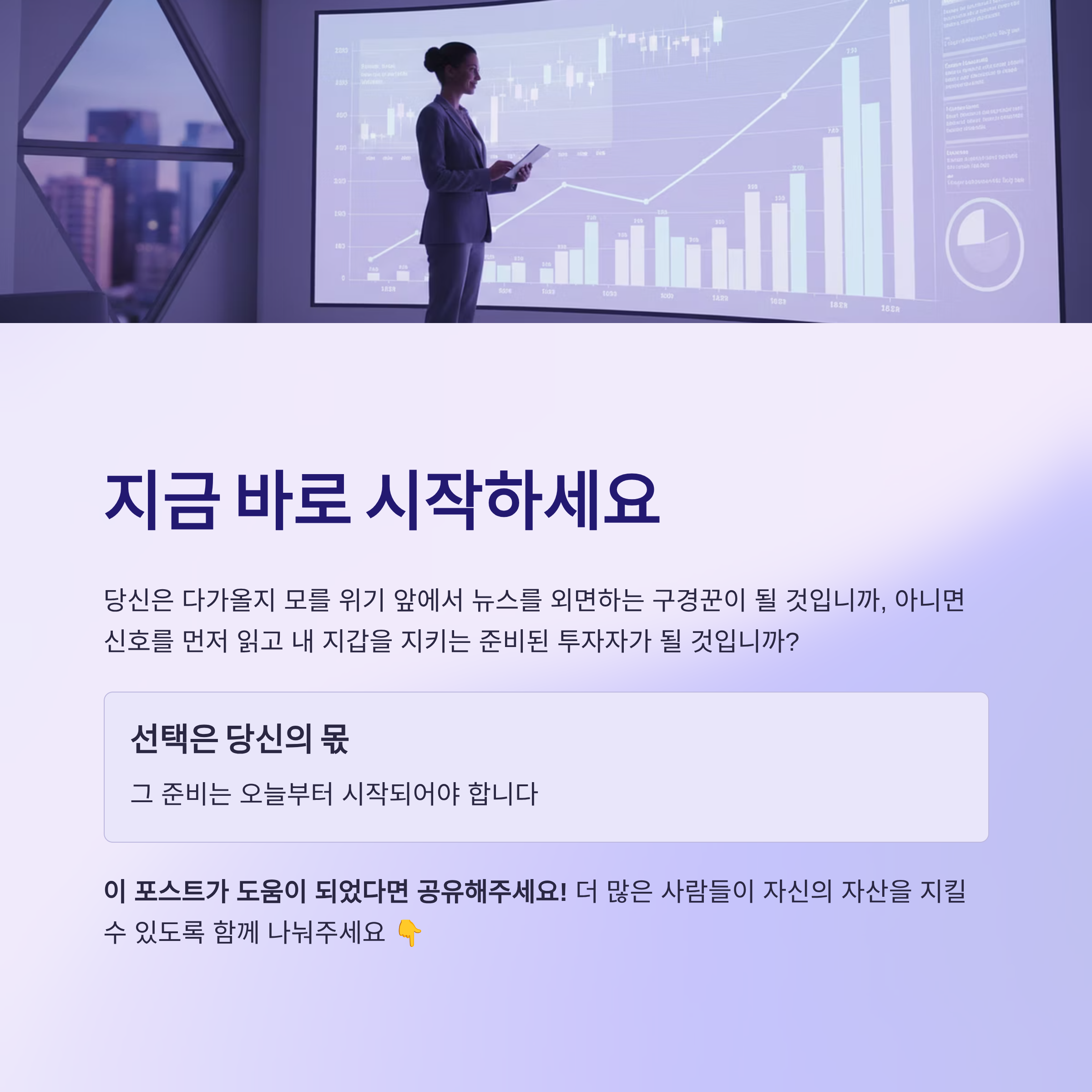 따라서 국가 파산은 더 이상 남의 나라 이야기가 아닙니다. 개인 투자자로서 우리는 이 거대한 흐름 앞에서 스스로를 지킬 최소한의 안전장치를 마련해야 합니다. 국가 신용등급, 경상수지, 외환보유고와 같은 경제 지표에 꾸준히 관심을 갖고, 위기의 신호를 읽어내는 눈을 길러야 합니다. 또한 원화 예금에 모든 자산을 집중하는 대신 달러, 금, 해외 주식 등 자산을 분산하여 통화가치 하락의 위험을 헷징해야 합니다. 위기는 언제나 가장 약한 개인과 가게부터 무너뜨립니다. 지금 이 순간, 당신은 다가올지 모를 위기 앞에서 뉴스를 외면하는 구경꾼이 될 것입니까, 아니면 신호를 먼저 읽고 내 지갑을 지키는 준비된 투자자가 될 것입니까? 선택은 당신의 몫이며, 그 준비는 오늘부터 시작되어야 합니다.