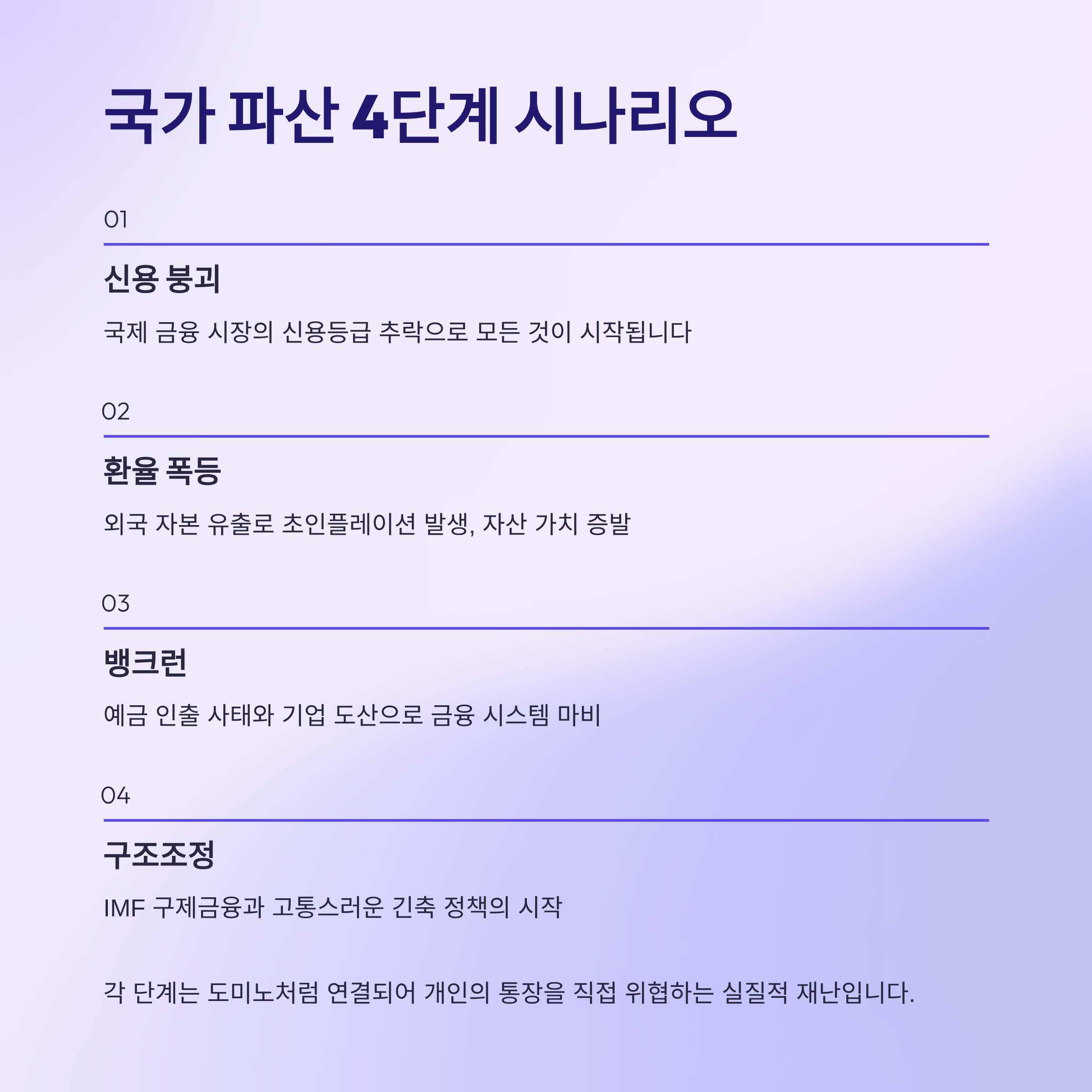 핵심 요약: 국가 파산 4단계 시나리오