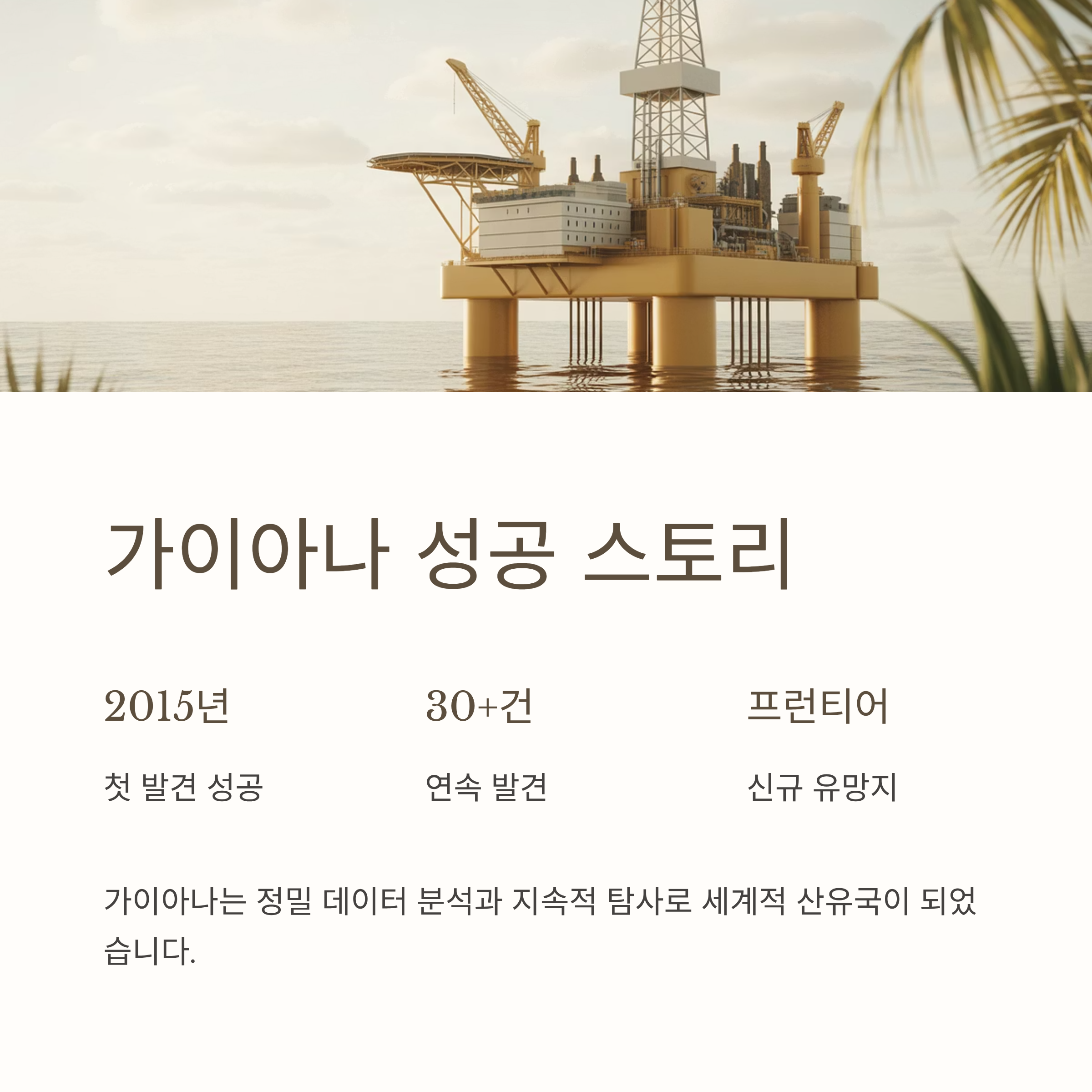 최근 심해유전 탐사 트렌드는 프런티어 지역(신규 유망지)에 집중되고 있으며, 가이아나의 경우 2015년 첫 성공 후 30건 이상의 연속적 발견으로 이어지고 있습니다. 글로벌 탐사의 핵심은 ‘누적된 시도’와 ‘정밀한 데이터 분석’이며, 메이저 기업의 참여 자체가 경제성과 지질 가능성의 신호입니다.