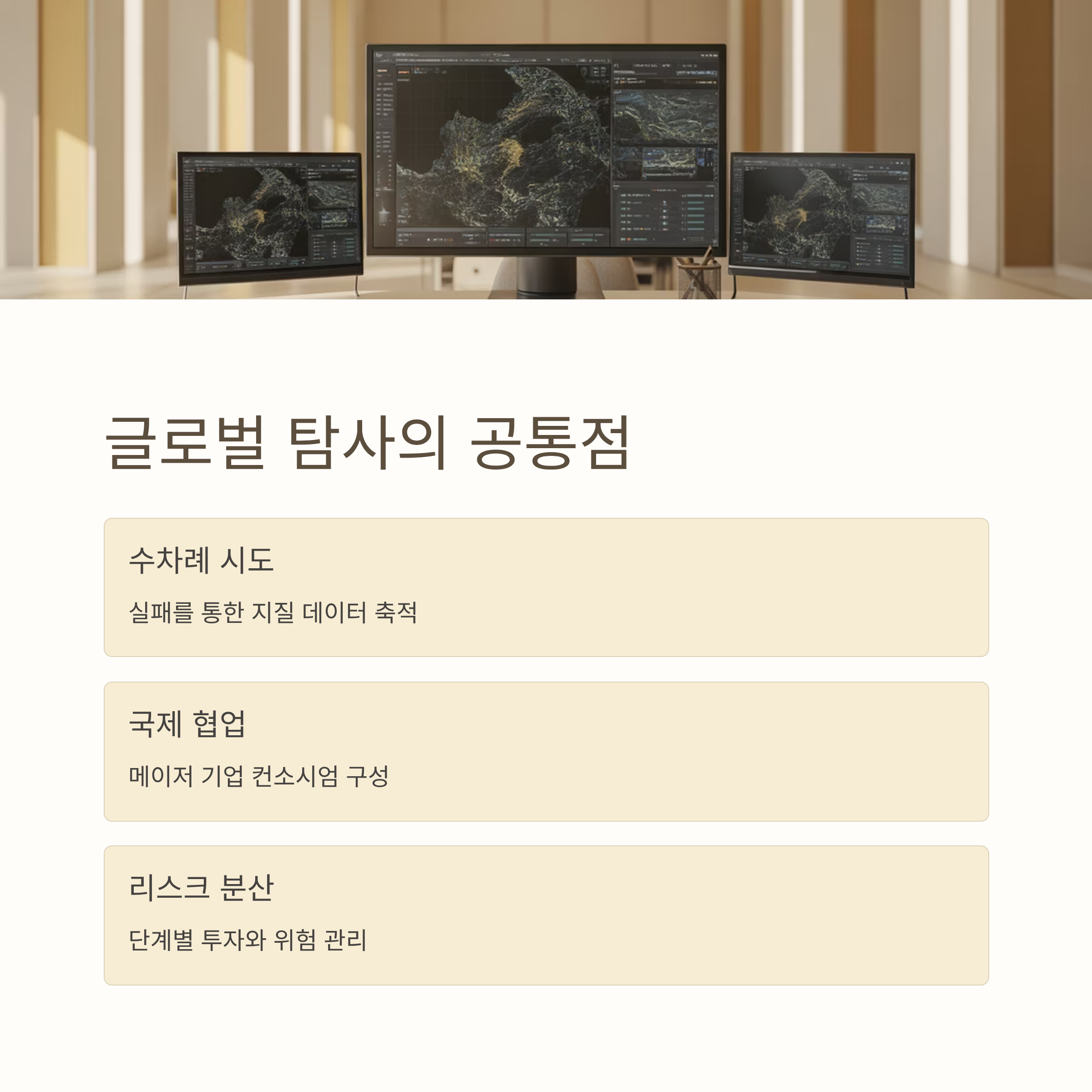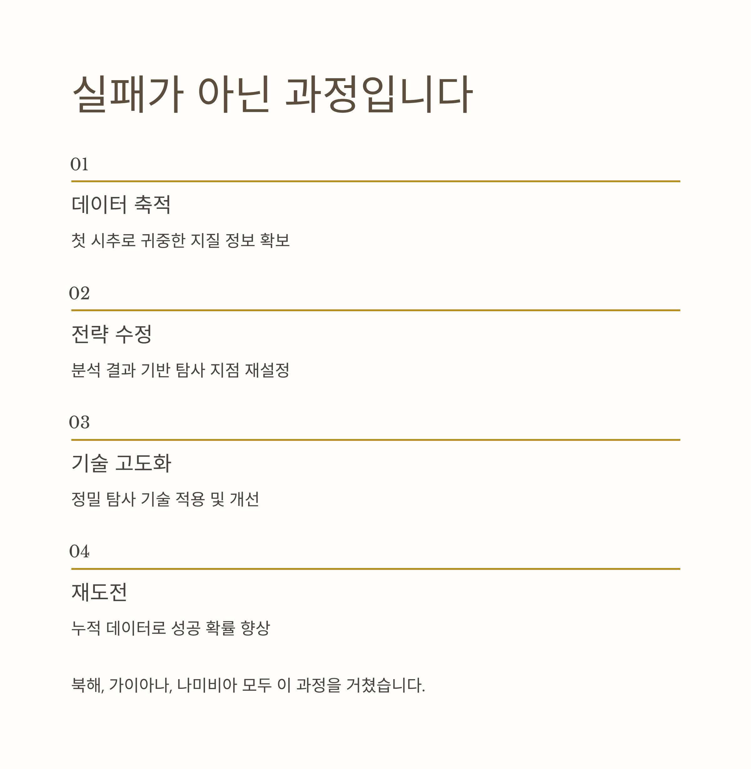 결과적으로 중요한 건 단순한 성공 여부가 아니라, "그 지역에 진입하는 기업의 구성과 기술투자의 진정성"입니다. 데이터는 축적되고, 확률은 올라갑니다. 이것이 탐사의 세계적 메커니즘입니다.