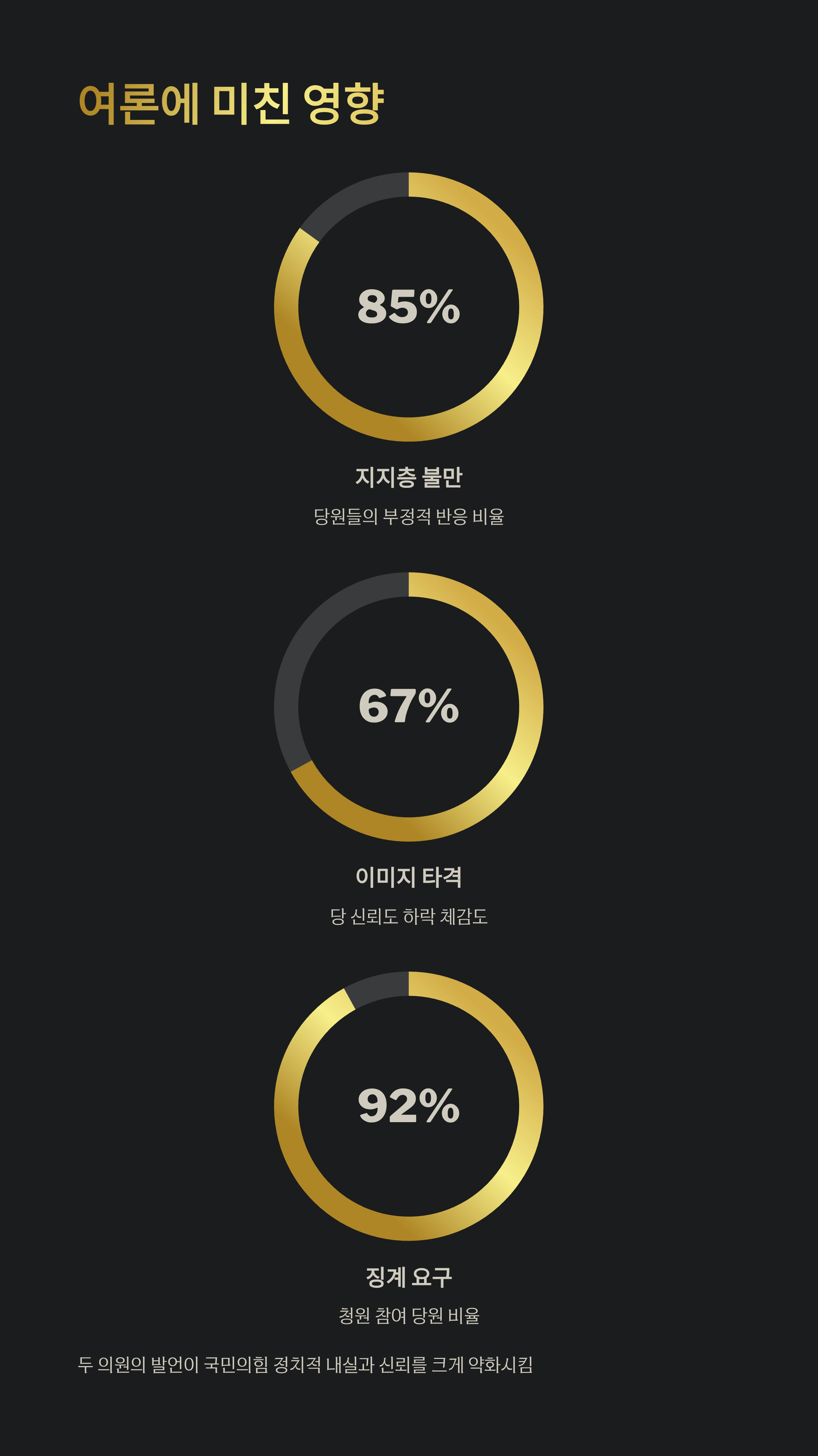 | A. 두 의원의 발언은 각각의 지지층과 대중에게 부정적인 반응을 유발하며, 국민의힘의 정치적 내실과 신뢰를 약화시키는 결과를 가져왔습니다. |
