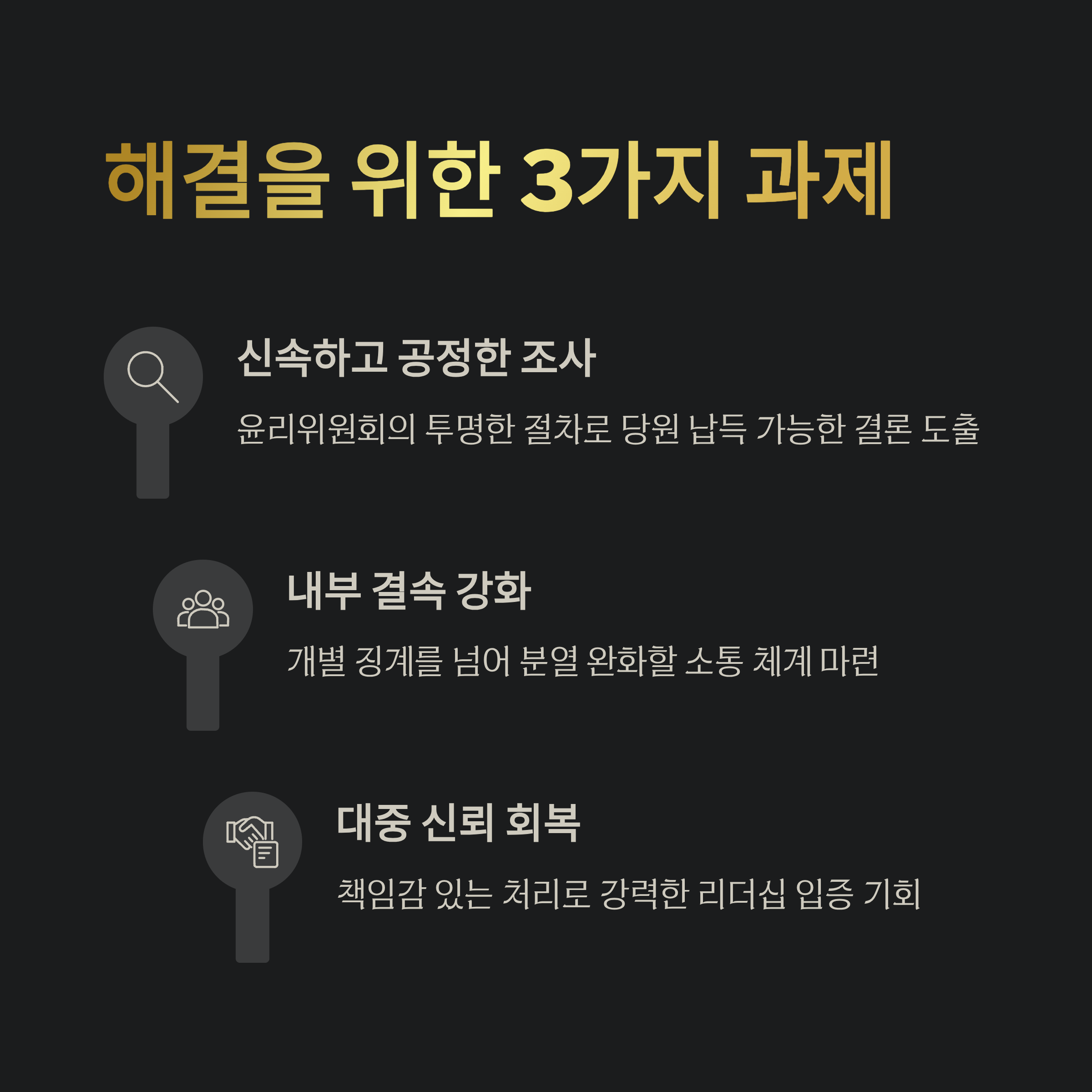 - 윤리위원회는 상황을 조속히 정리해야 당 내외적 이미지를 회복할 것으로 보입니다.