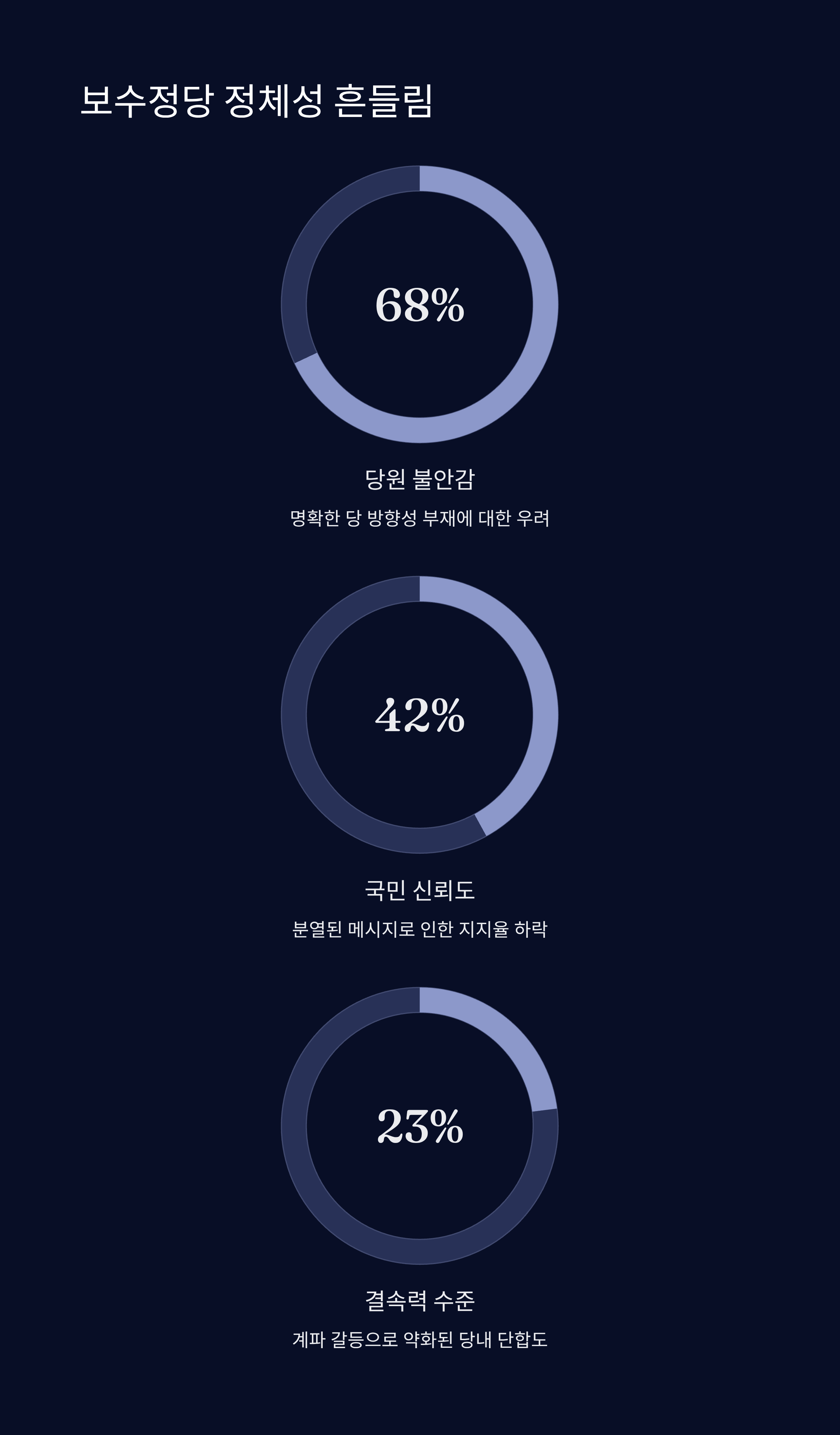 이는 더불어민주당 등 타 정당과의 경쟁 구도에서도 불리한 상황을 초래할 수 있습니다. 국민은 일관성 없고 논란만 반복되는 정당에는 신뢰를 보내기 어렵기 때문입니다. 결과적으로 보수정당으로서 재정립된 정체성은 대선 및 총선과 같은 중요 정치 이벤트에서 국민의힘의 생존 여부를 결정짓는 중요한 요소가 될 것입니다.