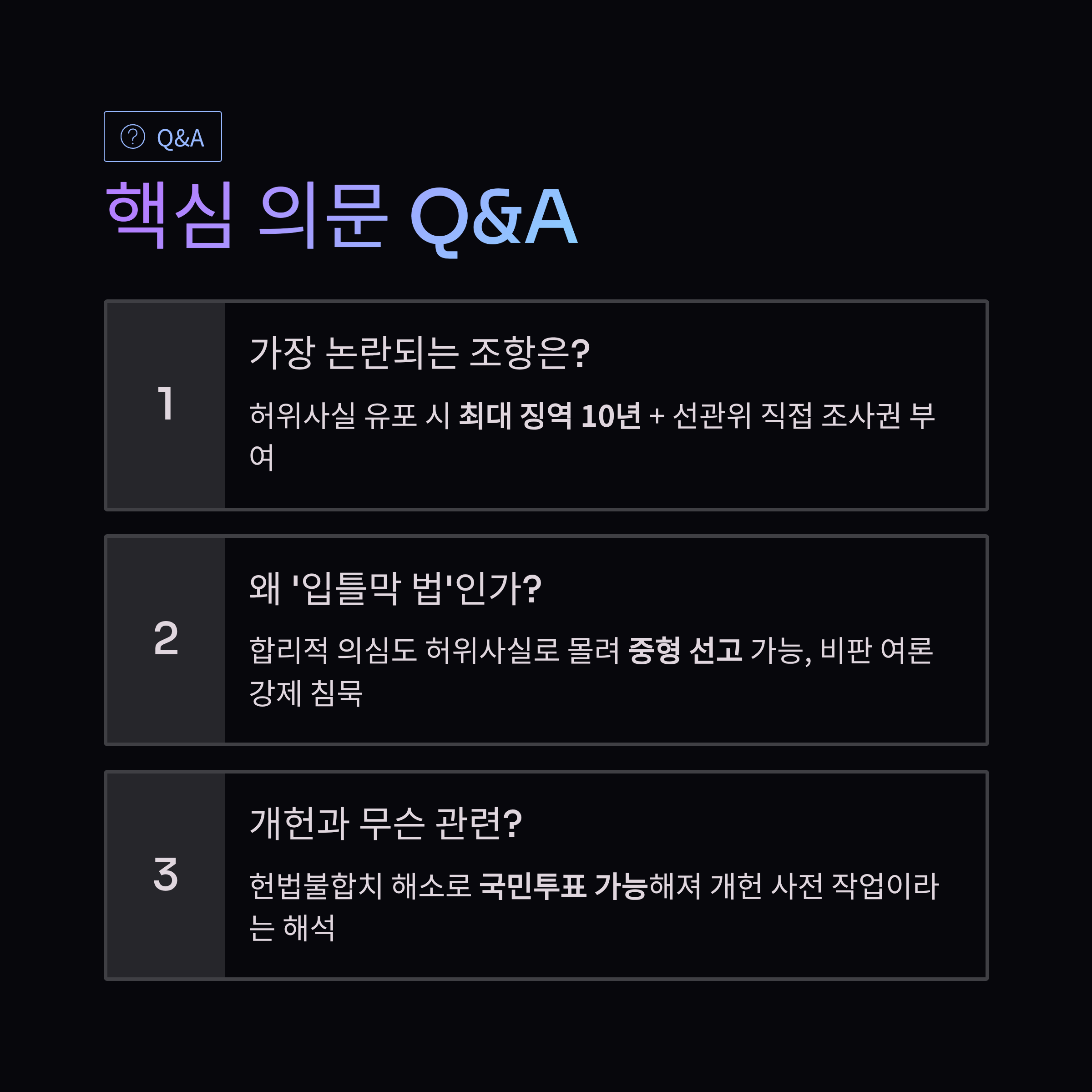 - 3. 분석: 과도한 형량, 선관위 권한 강화, 개헌을 위한 포석 등 3가지 관점 심층 분석