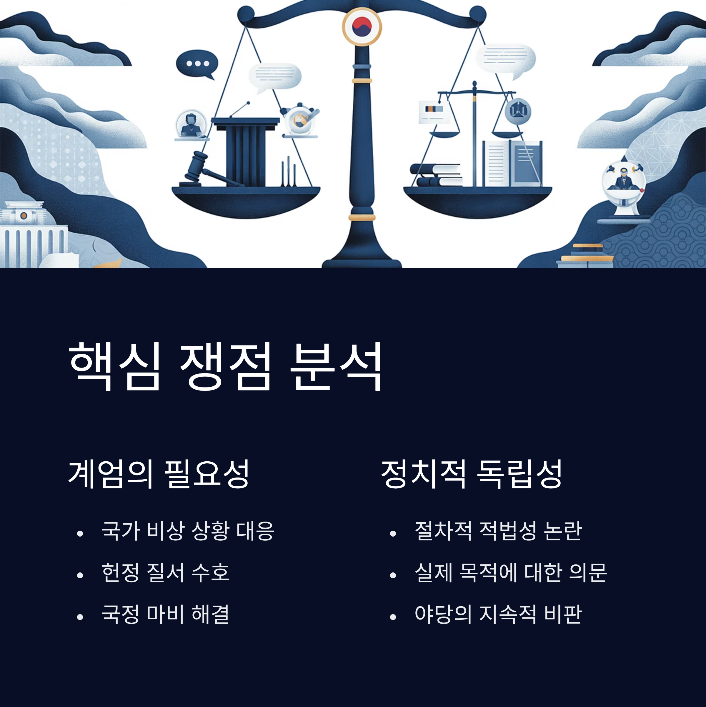 1. 국정 마비 상태를 해결하기 위한 비상계엄은 헌법상 정당한 조치로 평가됩니다.