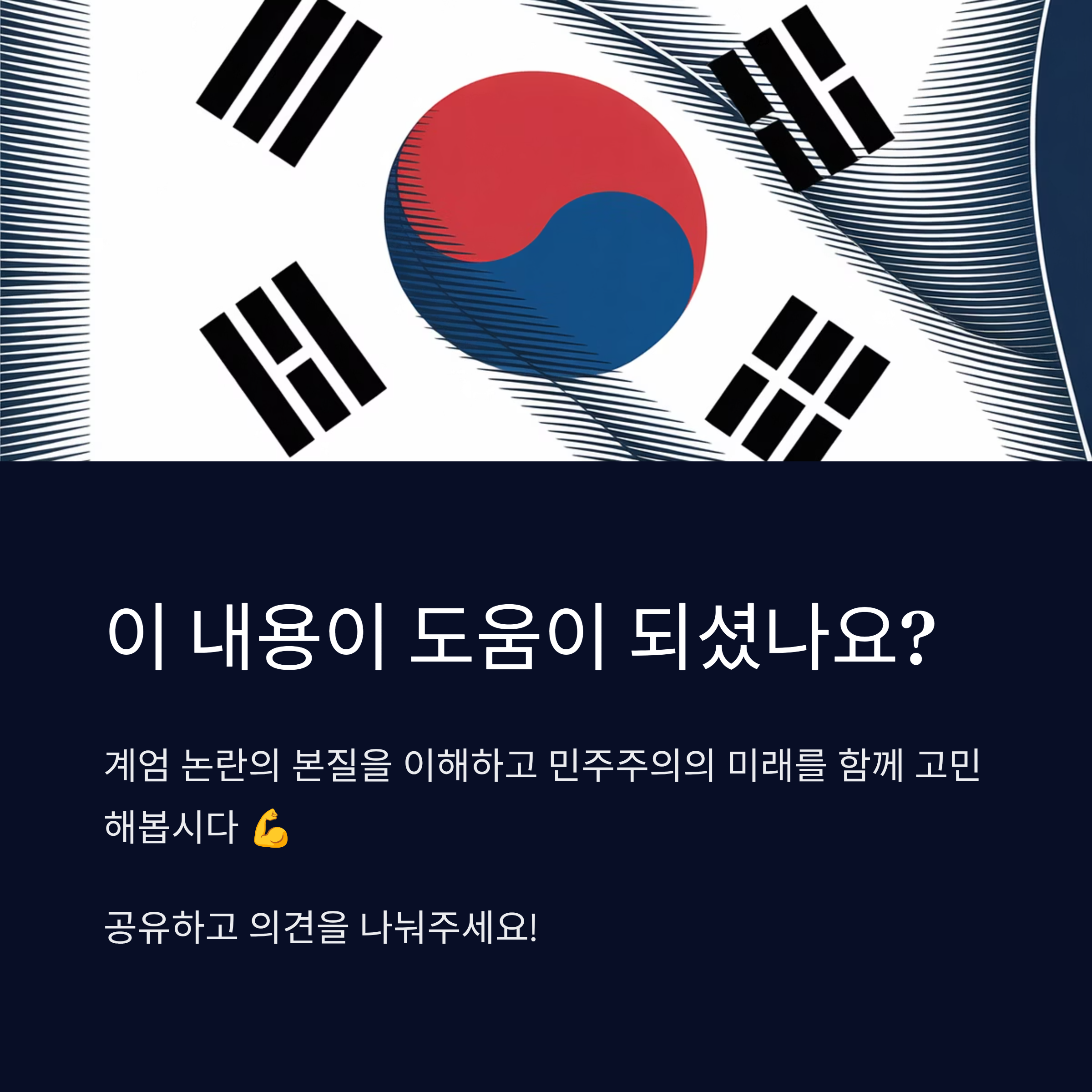 4. 계엄 논란은 민주주의와 국가 헌정 질서를 수호하기 위한 시민적 책임을 일깨우고 있습니다.