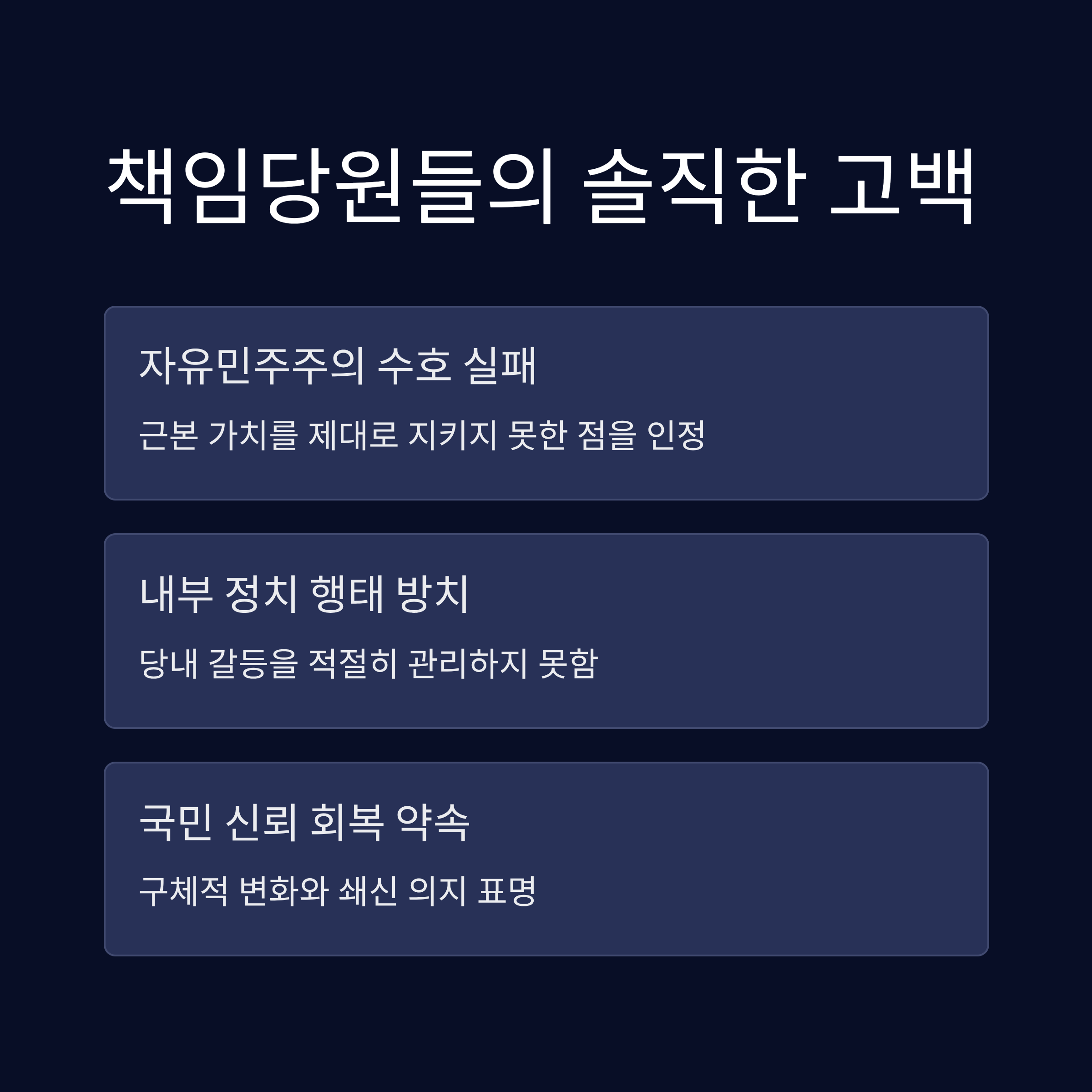 책임당원들은 자유민주주의를 지키지 못한 데 대한 깊은 반성과 사과를 표명했습니다.