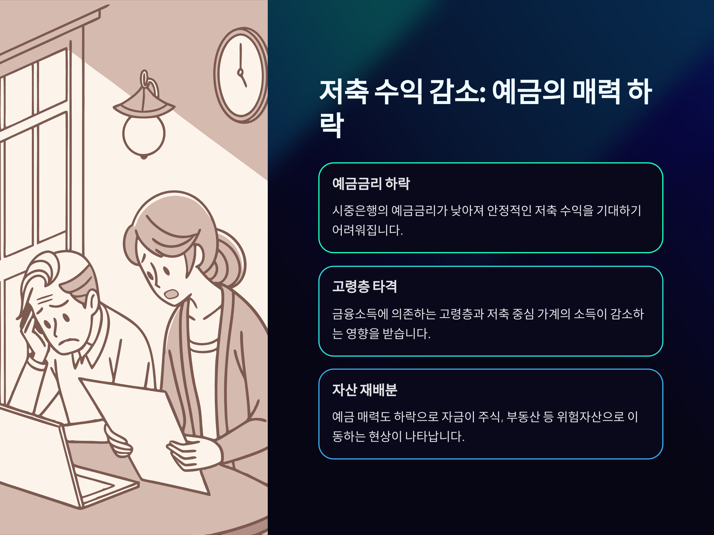 - 저축 수익 감소: 은행 예금의 매력 하락