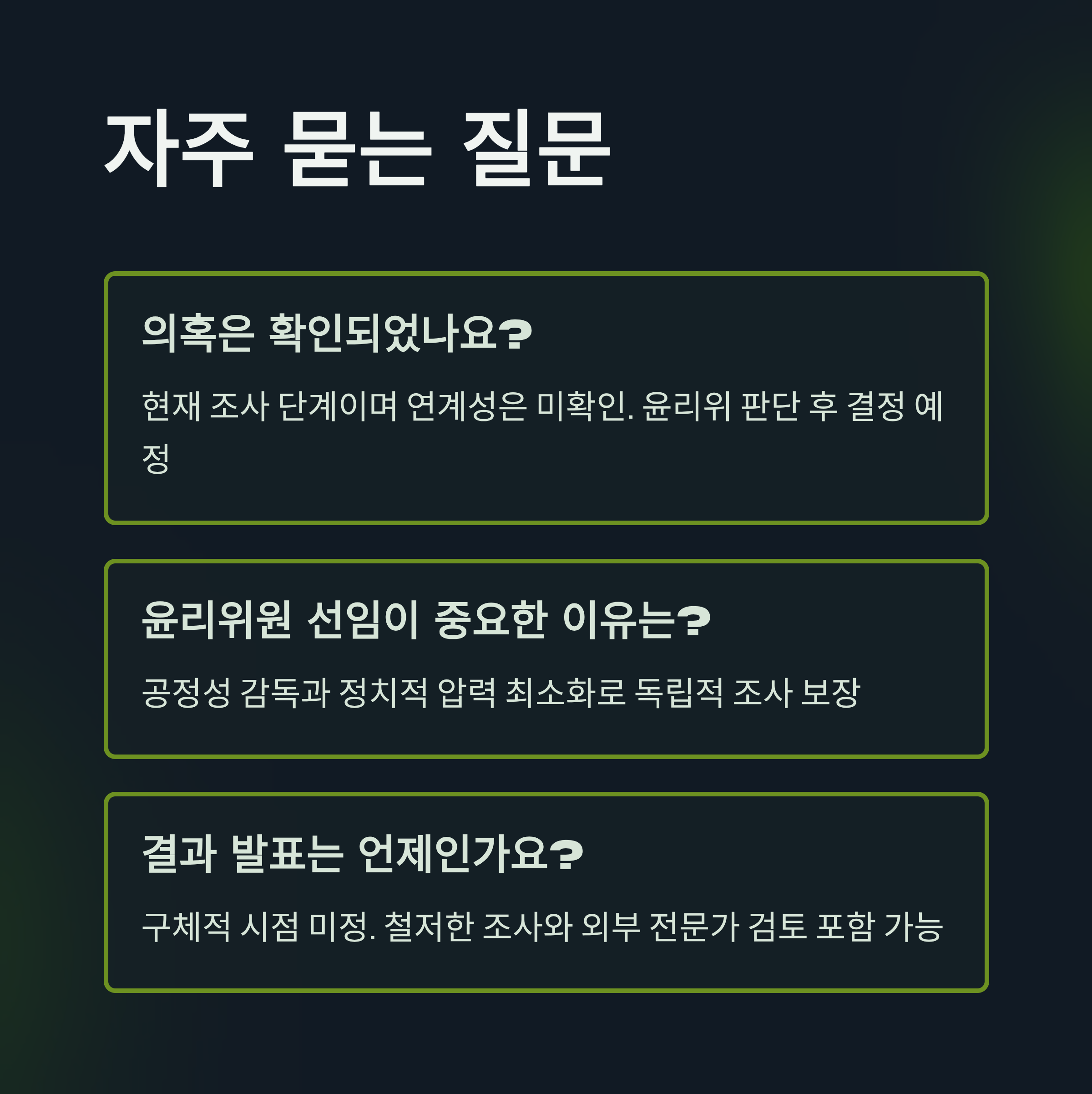 해당 논란의 주요 쟁점은 게시글 작성자의 신원 확인, 윤리위원장의 선임 과정, 조사 독립성 및 중립성 확보 등입니다. 특히, 일부 주장으로 전수 조사 여부와 진행 상황에 대한 논의가 이어지고 있으며, 언론과 여론의 방향성에 영향을 주고 있는 상황입니다.