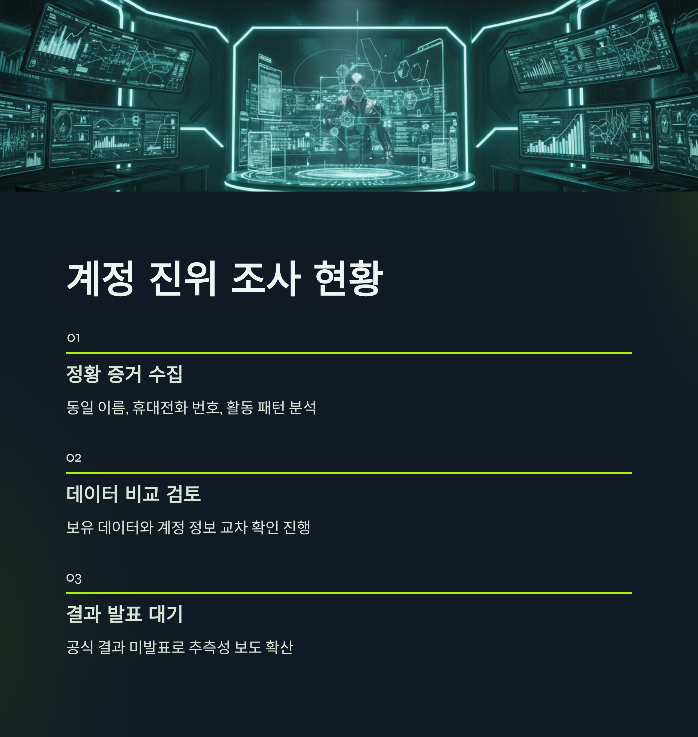 특정인의 관련성 의혹이 제기되며, 관련 계정과 작성자의 연계성 검토가 주요 조사로 진행 중입니다. 동일 이름, 휴대전화 번호 또는 유사한 활동 주체들의 정황 증거가 쟁점이 되었으며, 감사위원회는 보유 데이터와 비교 중이라 밝혔습니다. 그러나 공식 결과 발표가 이루어지지 않아 소문이 무성합니다. 확정되지 않은 정보들이 기자들의 추측성 보도로 확대 해석되며 대중과 당원들의 불신을 가중시키고 있습니다. 현재 상황에서는 조사가 마무리될 때까지 추측과 오해를 방지하기 위한 투명성이 요구됩니다.