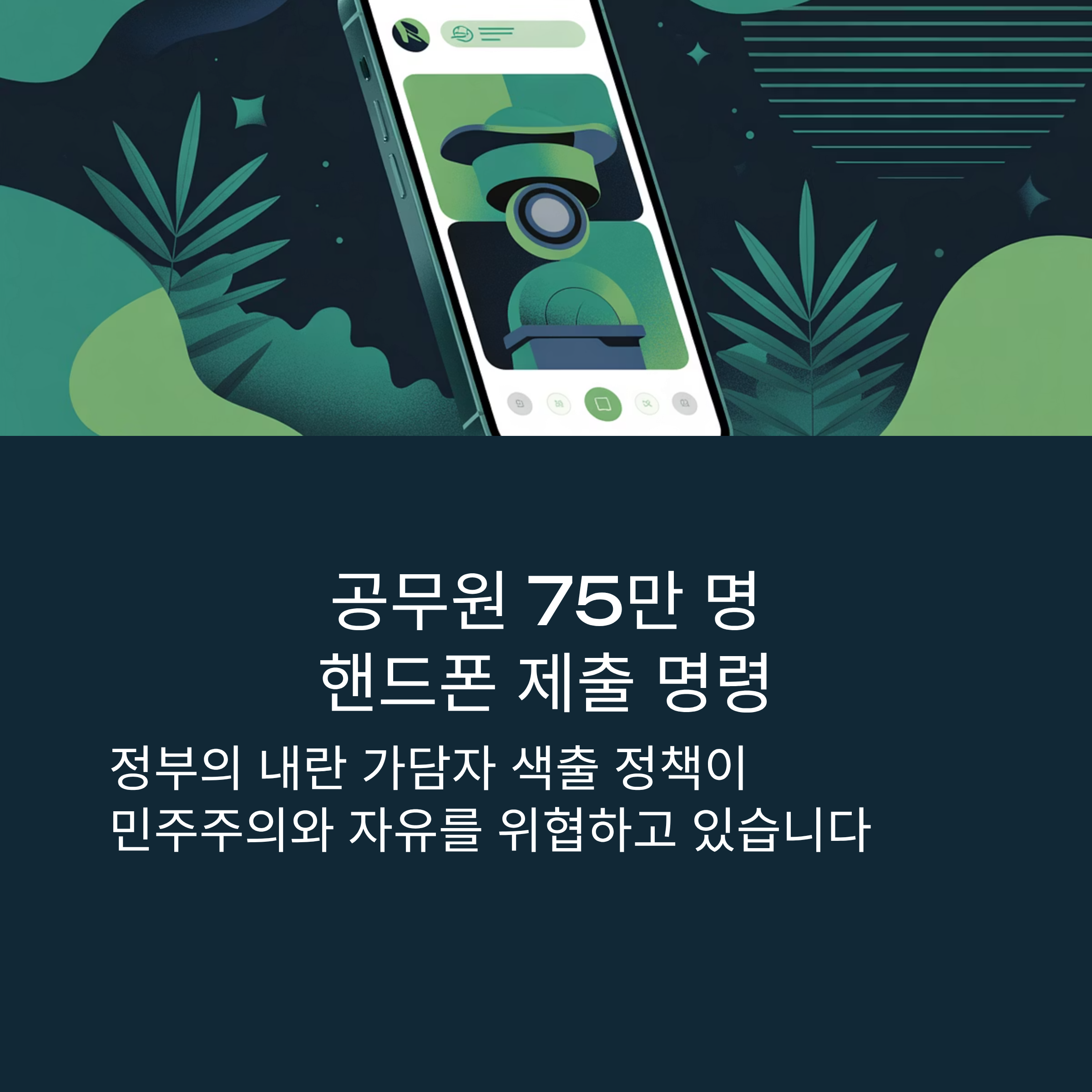 - 정부는 내란 가담자 색출 목적으로 공무원 약 75만 명에게 핸드폰 제출 요구를 시작.