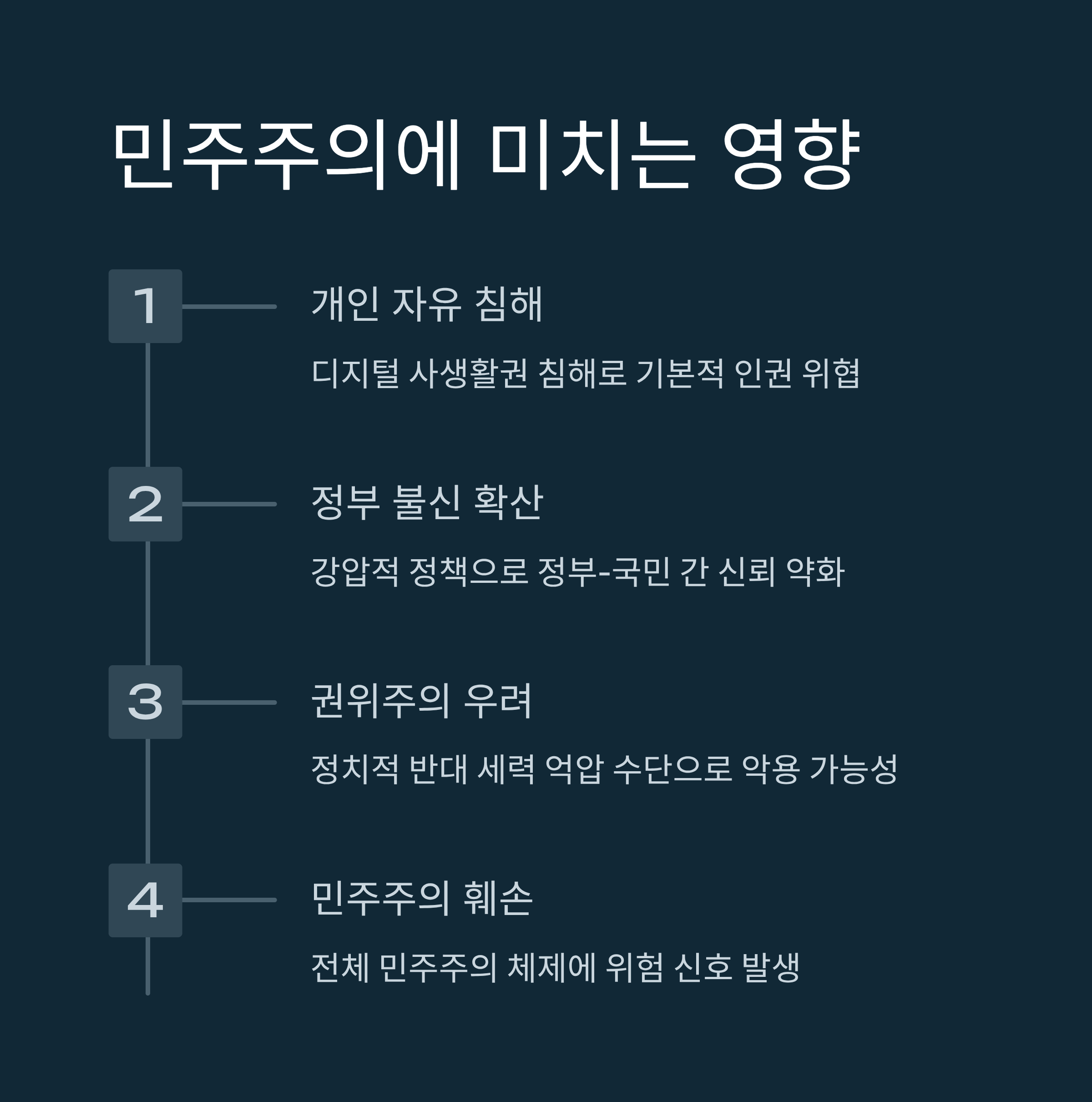 - 이 정책이 민주주의와 개인의 자유에 미치는 영향