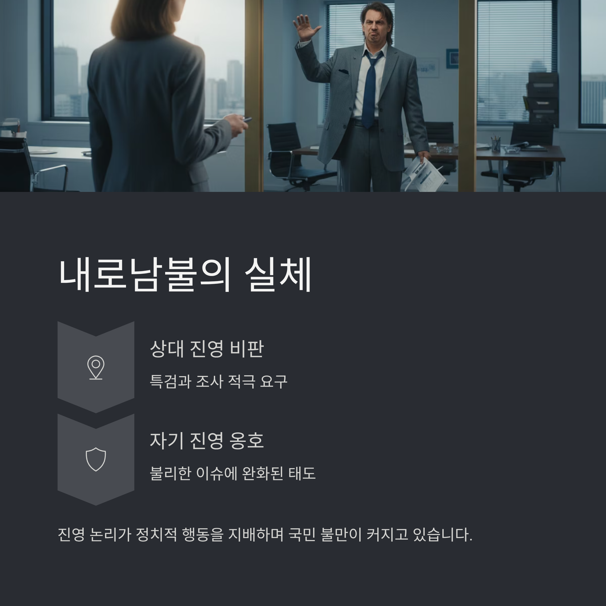 3. 여야 간 내로남불 비판: 서로의 도덕적 기준이 자가당착적이라는 비난 속에서 이중 잣대 문제가 부각. 4. 국민 요구: 정치적 사건의 공정한 조사와 진실 규명을 위한 투명한 시스템 필요.
