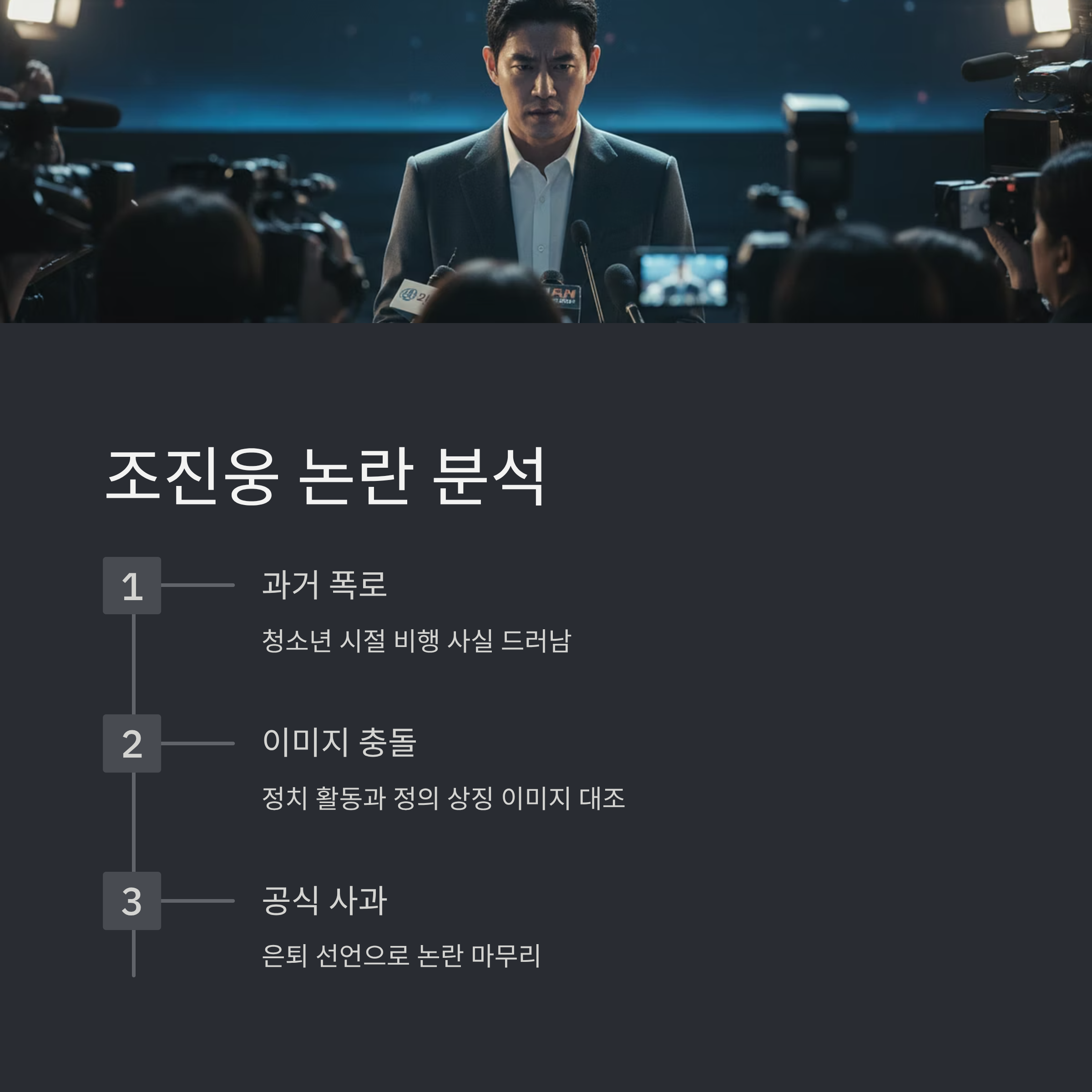 2. 조진웅 과거 논란: 청소년 시절의 비행이 폭로되며 그의 정치적 행보와 대조되었다는 부정적 반응 확인.
