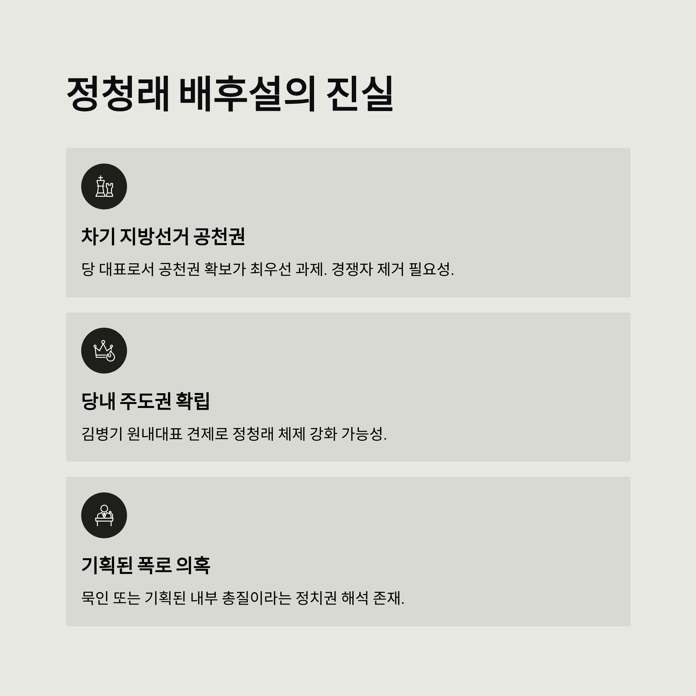 | Q3. 이번 사태가 민주당 내 권력 다툼과 관련이 있다는 분석은 왜 나오나요? |