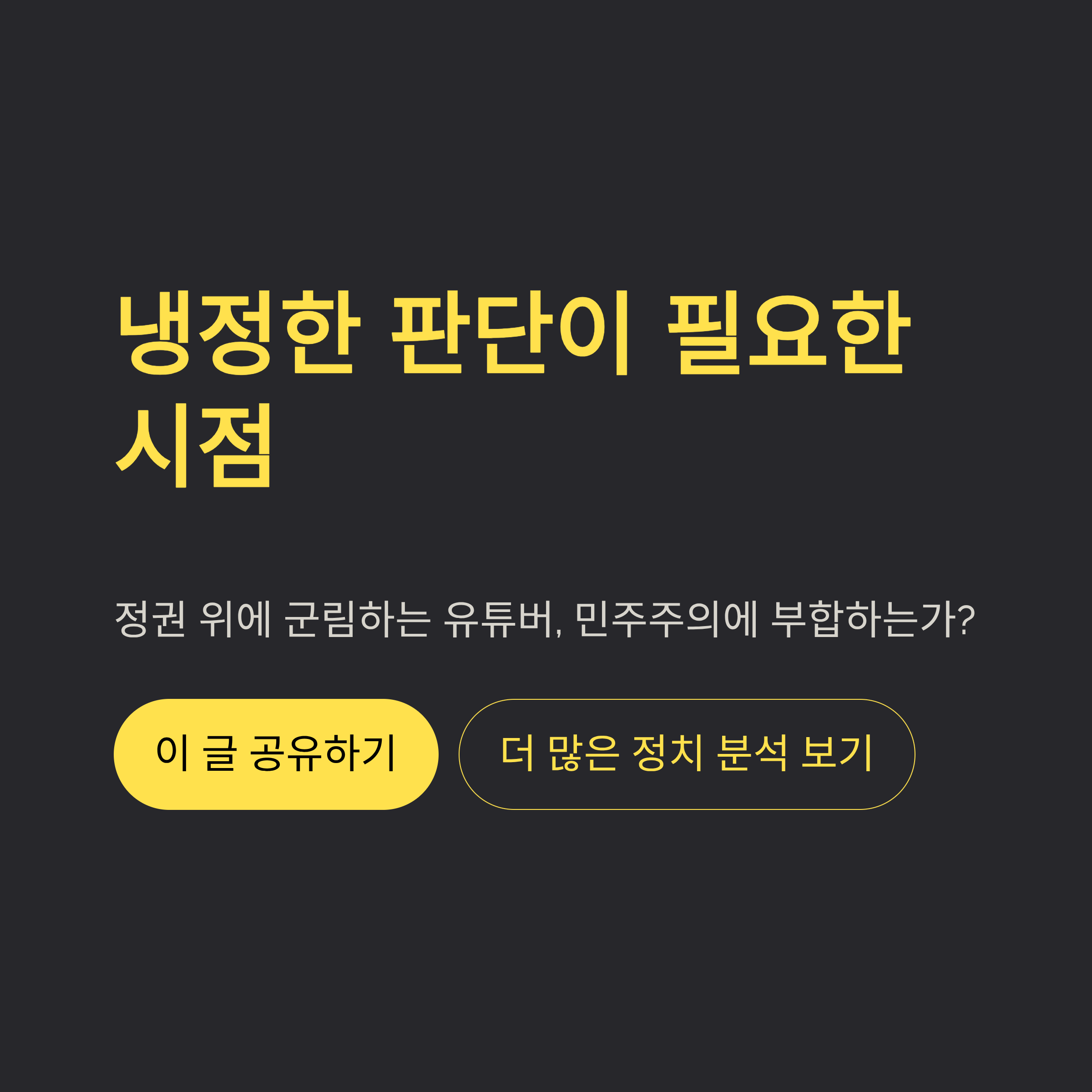 결론: 유튜버 권력이 정권 위를 점령한 기형적 구조에 대한 제언