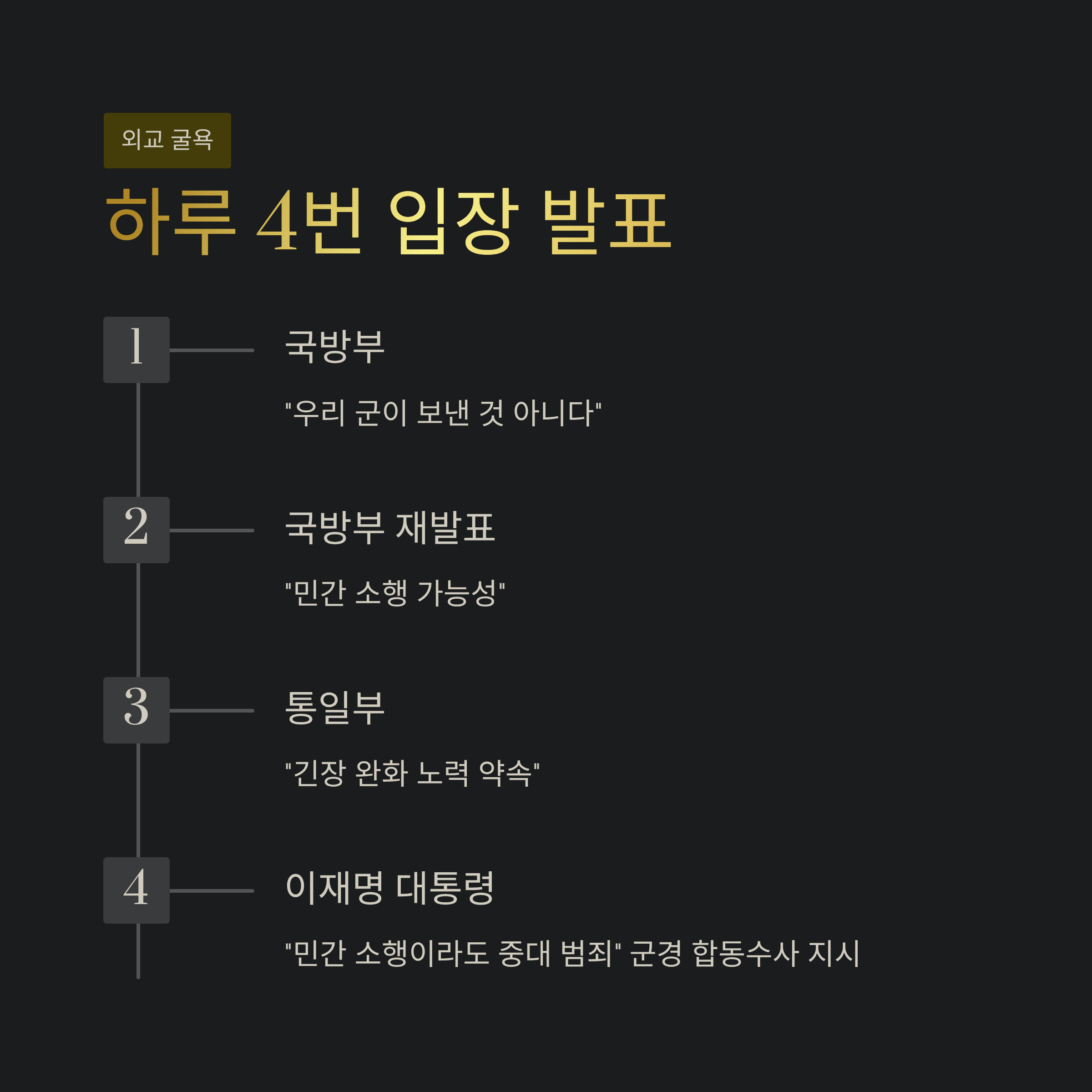 김여정이 무인기 사건을 비난하자, 우리 정부는 하루 만에 무려 네 차례나 입장을 발표하며 이례적으로 신속하고 저자세적인 모습을 보였습니다. 국방부는 "우리 군이 보낸 것이 아니다"라고 해명한 데 이어, 민간 소행 가능성을 언급했습니다. 통일부는 "긴장 완화 노력"을 약속했고, 이재명 대통령은 "민간 소행이라도 중대 범죄"라며 군경 합동 수사까지 지시했습니다. 이는 사실상 북한의 주장을 수용하고 진상 규명을 보고하려는 듯한 인상을 주었습니다.