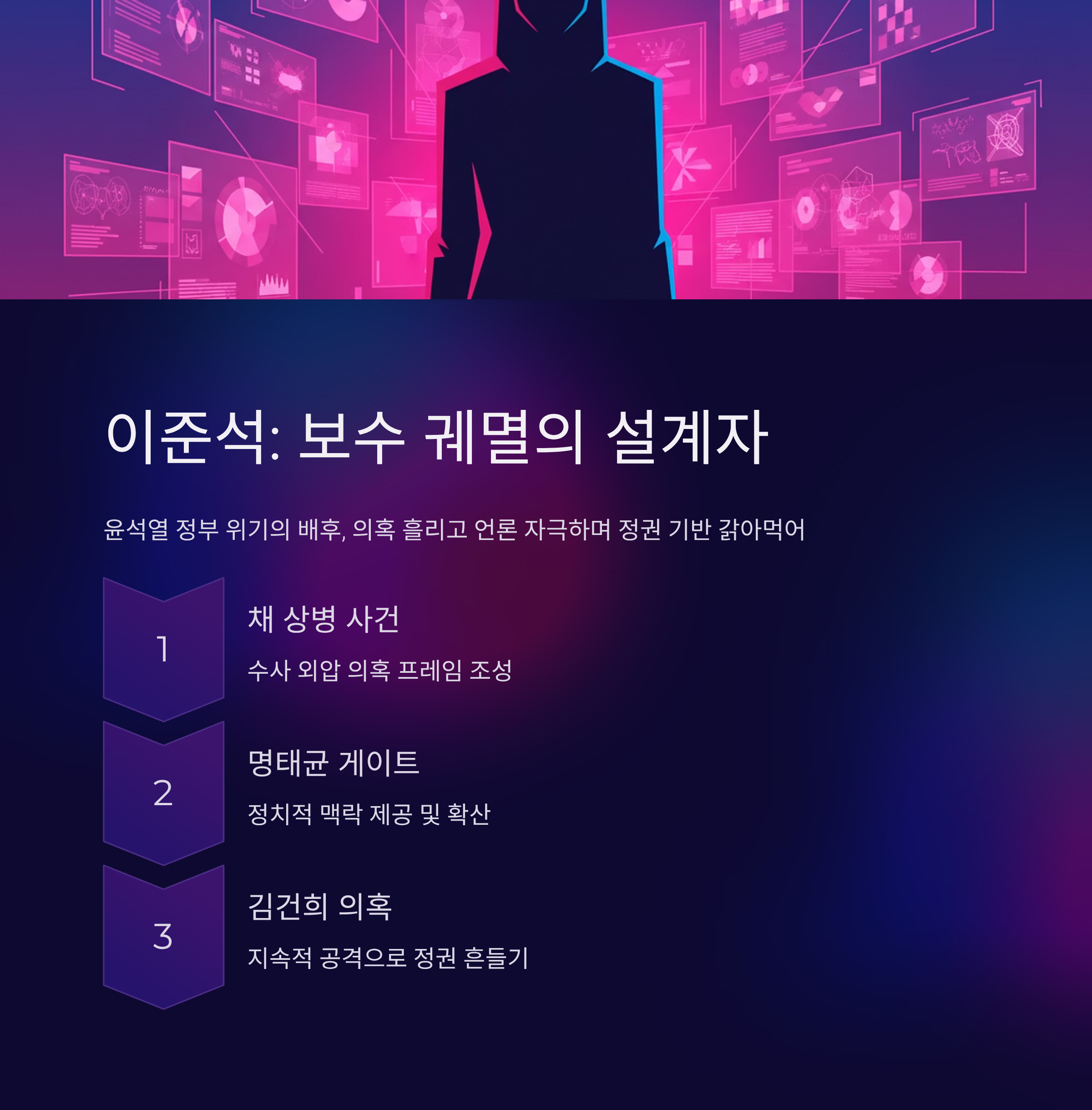이준석의 본질: 그는 단순한 내부 비판자가 아니라, 채 상병 사건, 김건희 여사 공천 개입 의혹 등 탄핵의 핵심 트리거를 제공하고 여론을 교란한 '핵심 파괴자'였습니다.