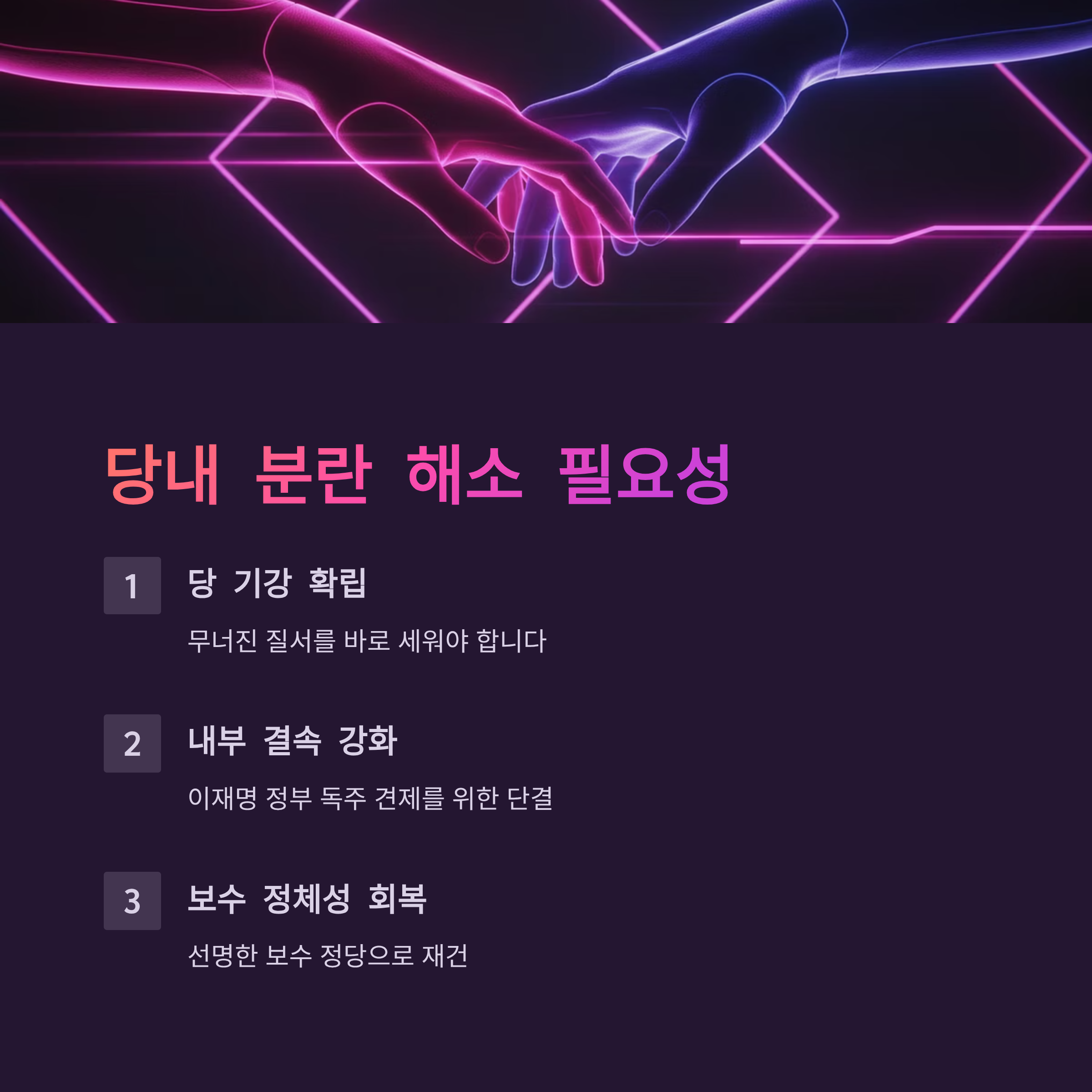 ⚖️ 결론: 당내 분란 해소와 쇄신의 필요성 강조