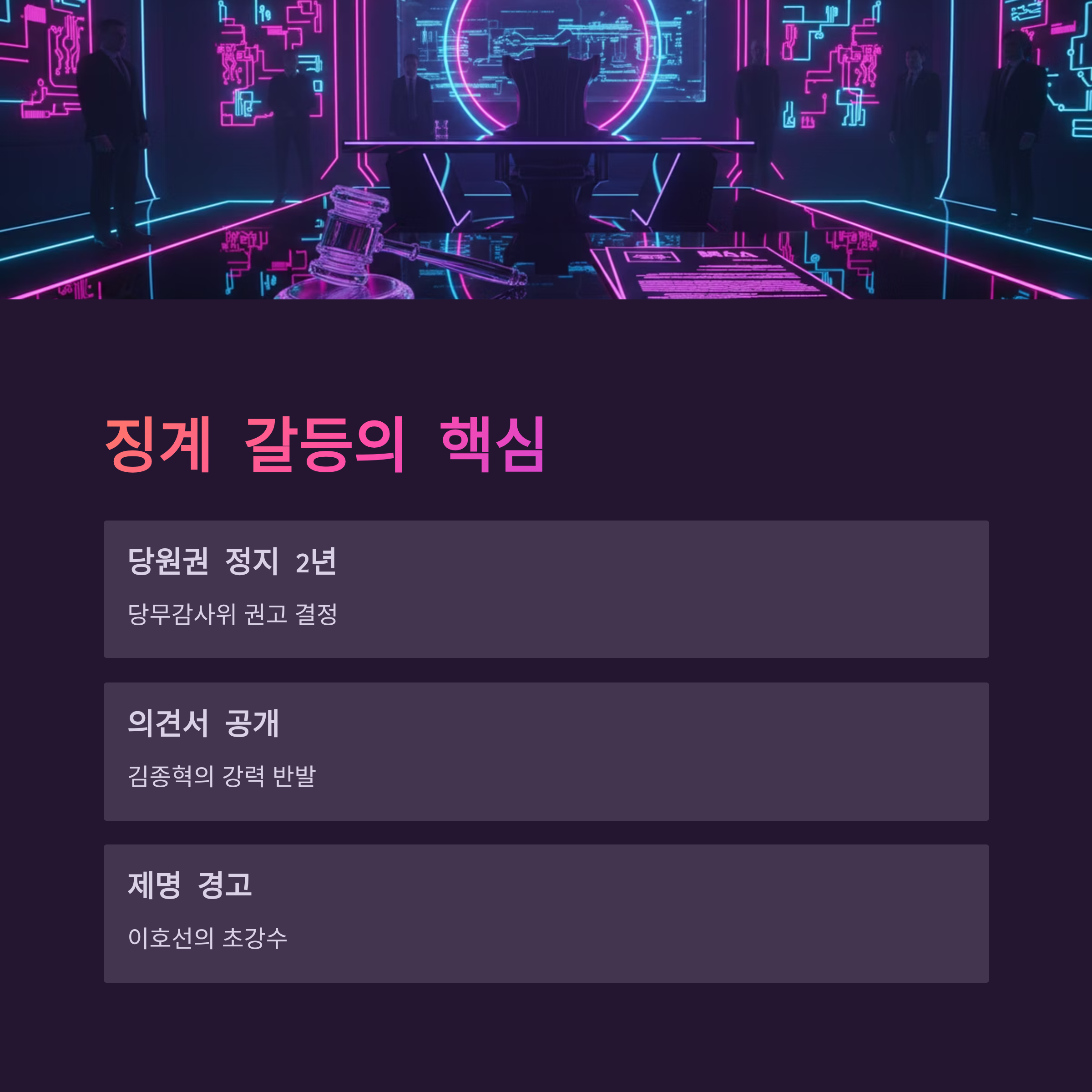 🔬 분석: 징계 사유 분석, 내부 갈등 심화, 향후 정치적 파장