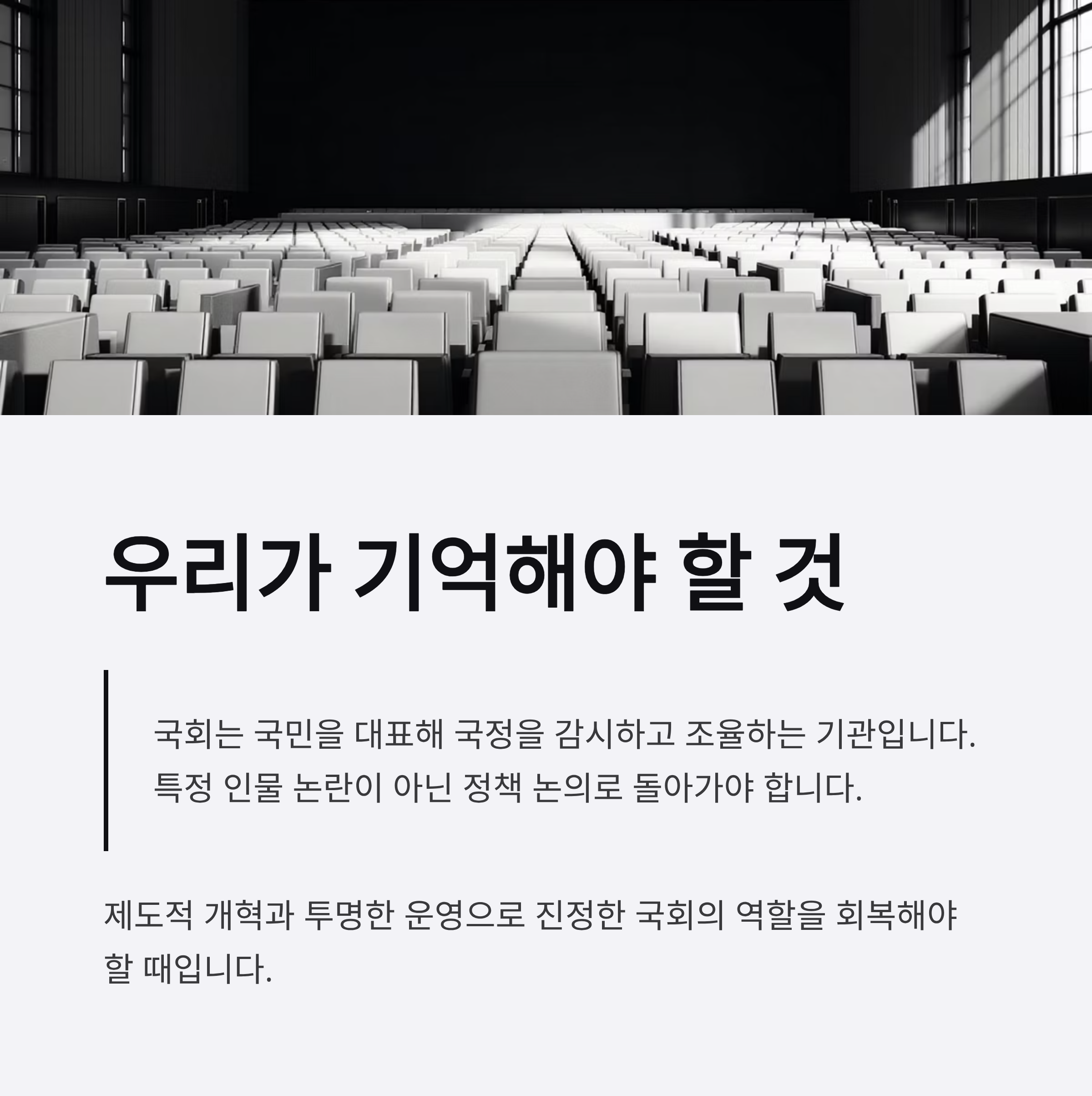 | Q. 이런 논란을 예방하려면 국회가 어떻게 개선될 수 있을까요? |