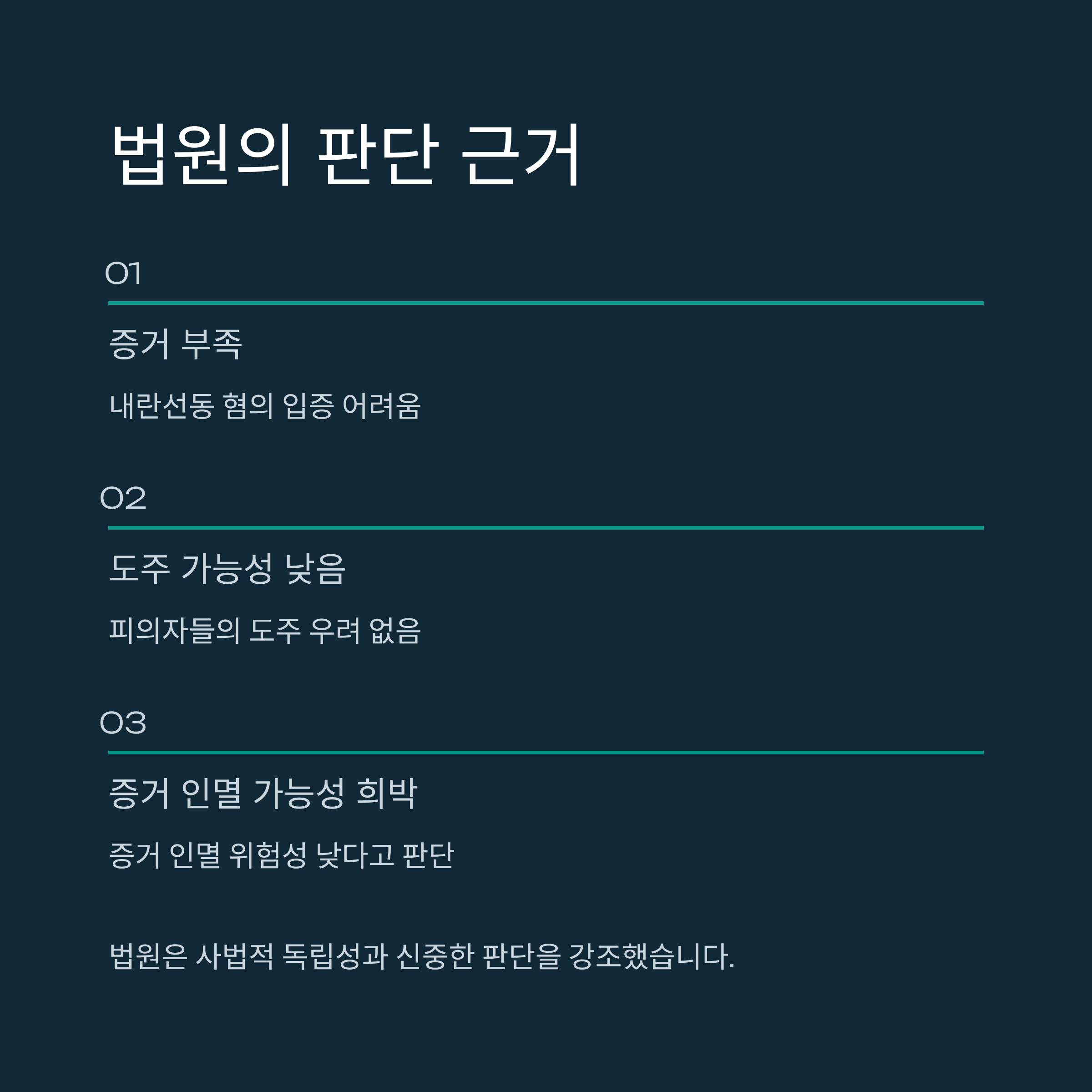 법원이 기각 결정의 명분으로 혐의의 다툼 가능성을 들었다는 점은, 특검이 혐의를 구체적이고 객관적으로 입증하지 못한 것으로 해석될 수 있습니다. 이는 향후 법적 논쟁에서 내란선동의 기준을 재정립하거나 명확히 해야 할 필요성을 제기하고 있습니다.