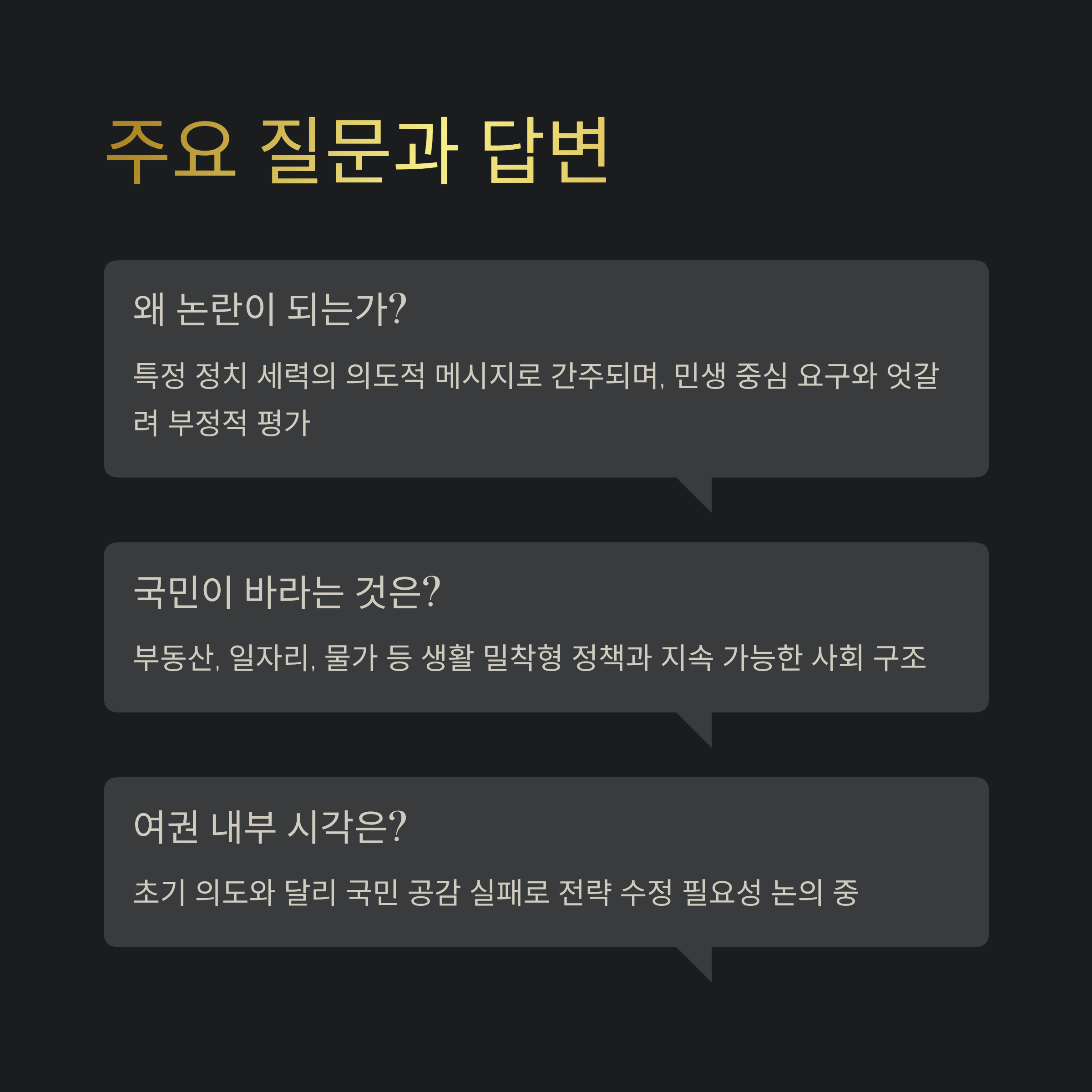 5. 현 상황에 대한 초점은 국민 신뢰 회복 및 현실적 정책 이행에 맞춰져야 합니다.