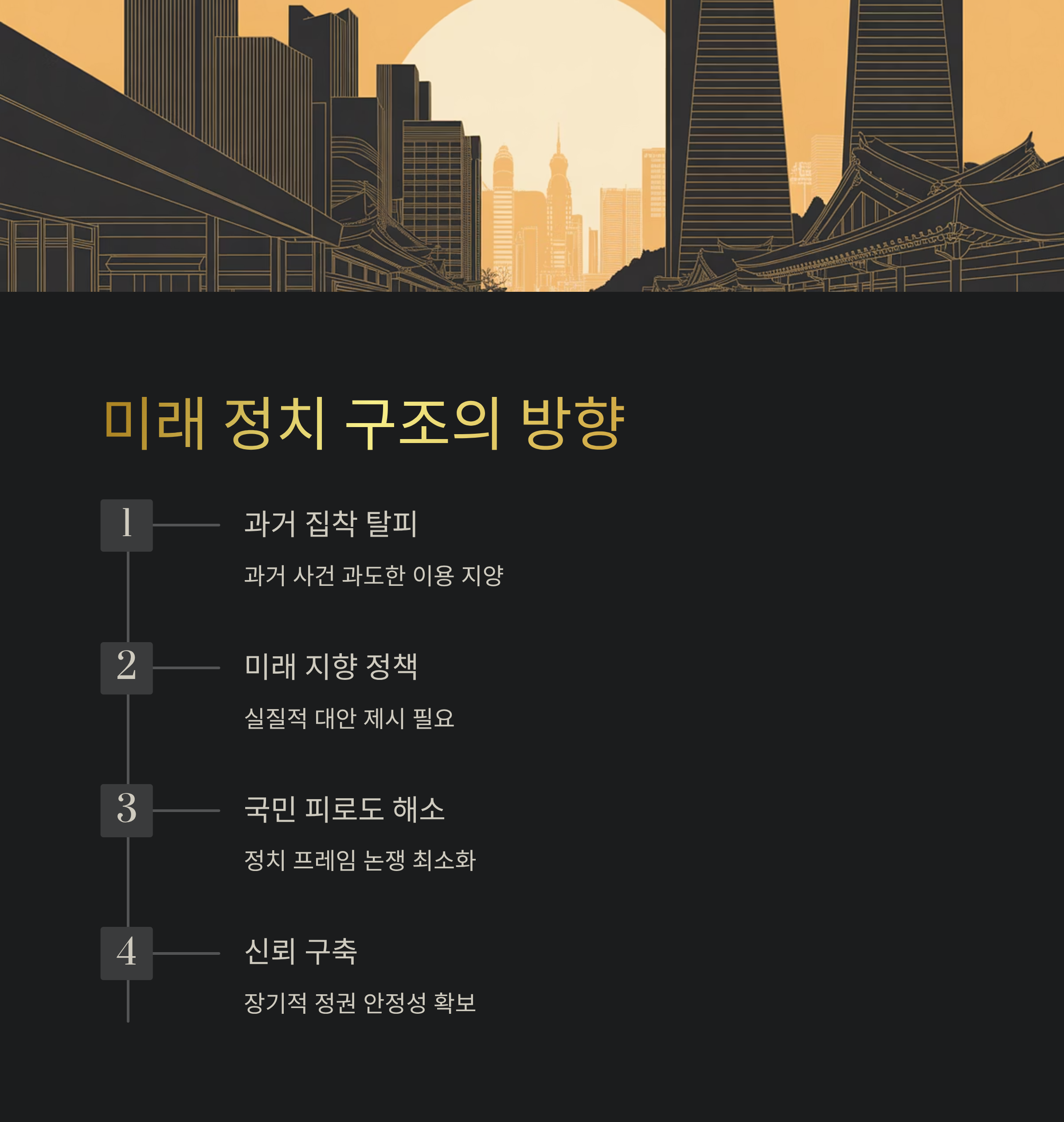 정치적 의도와는 별개로, 내란 프레임의 논의는 국민이 정치 과정을 바라보는 시각에 중요한 질문을 던집니다. 더 이상 과거 사건에만 몰두하기보다, 미래 지향적인 정책 대안을 제공하지 못한다면 여권의 장기적인 구도 역시 불투명해질 가능성이 큽니다. 과거 사건을 과도하게 이용하면 국민의 피로도가 쌓이고 정권의 신뢰는 더욱 저하될 것입니다.