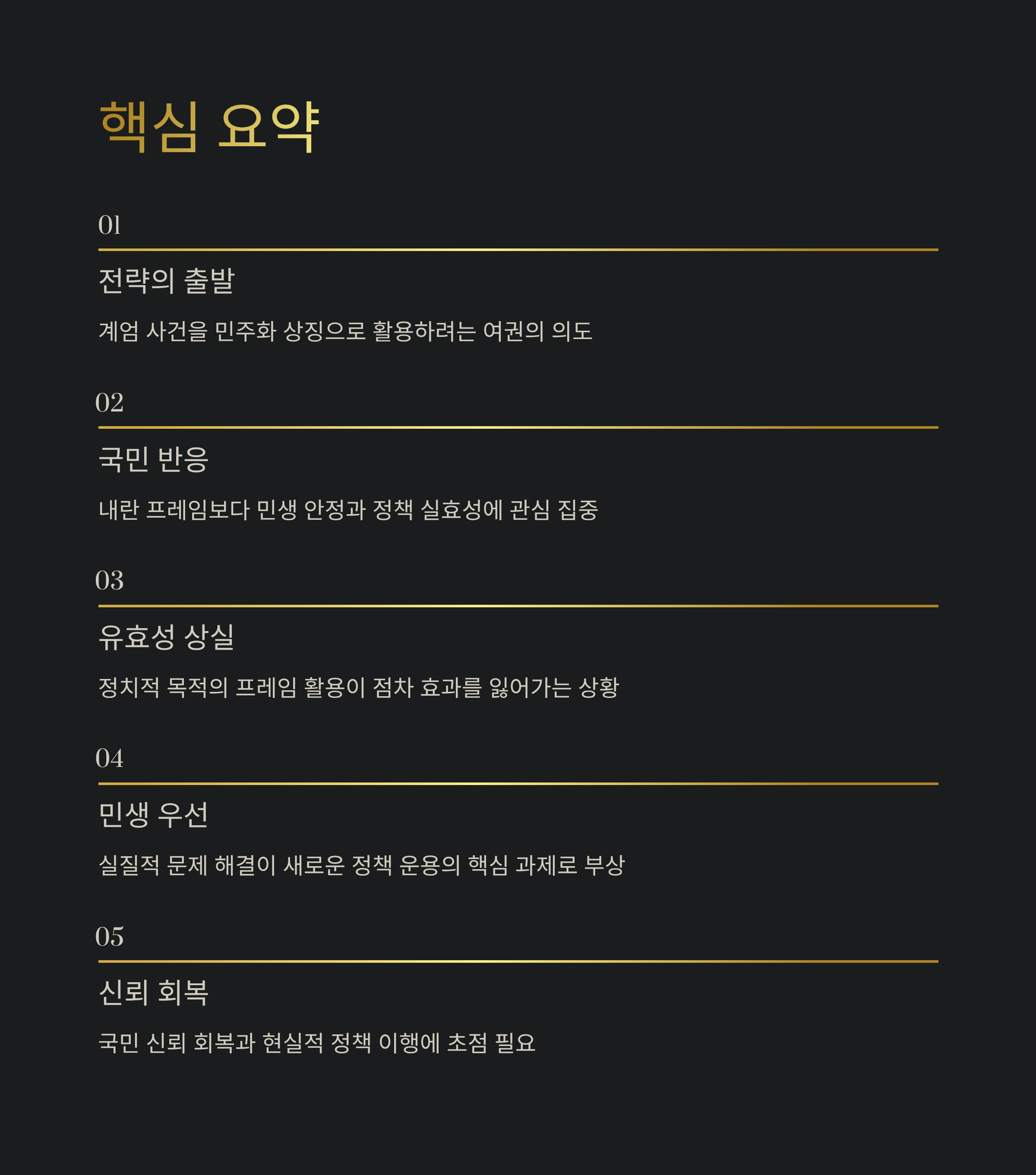 관련 태그: 내란 프레임, 정치프레임, 민주화 논란, 국민 반응, 민생 우선, 정치분석, 한국 정세, 미래 정치