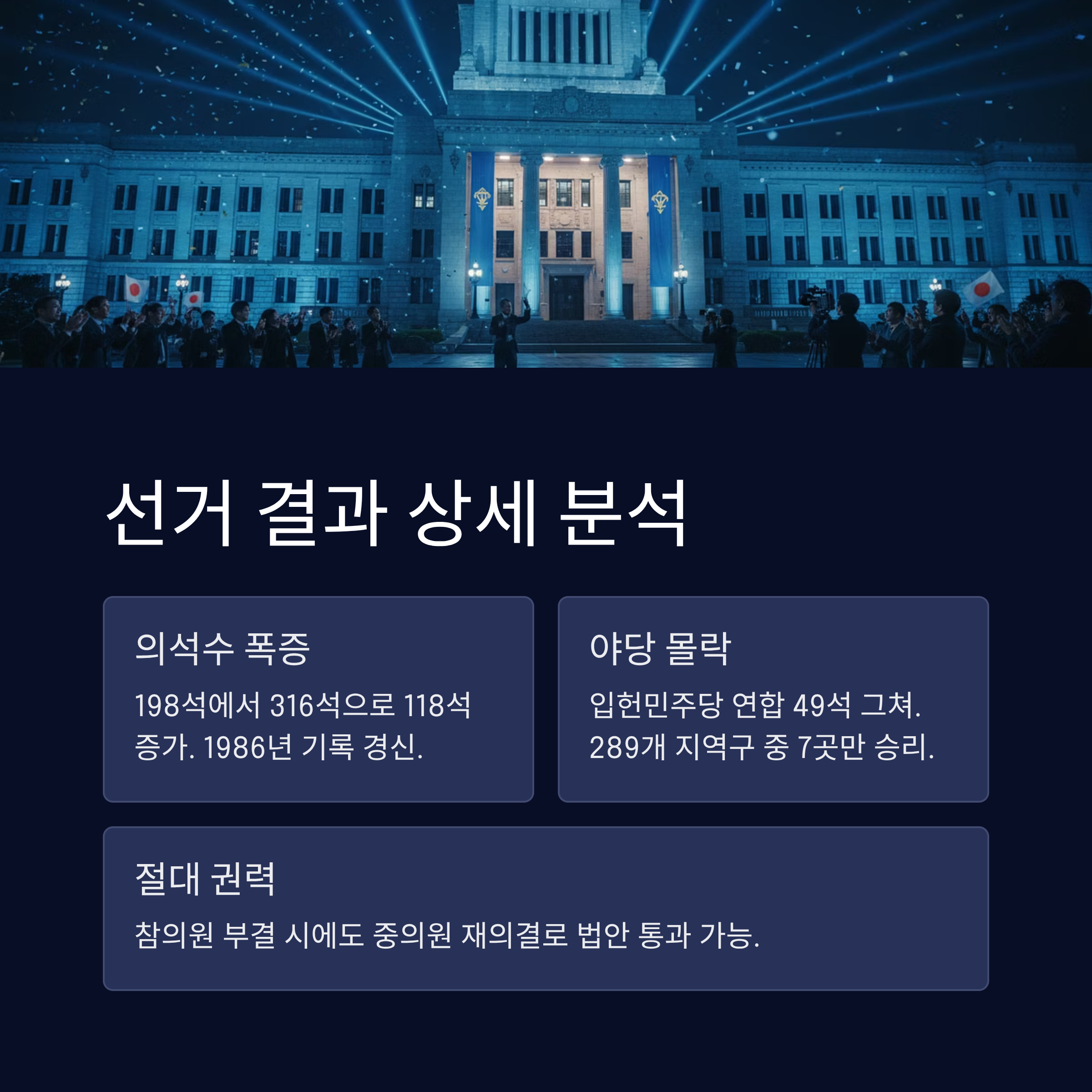 - 2. 핵심요약: 316석 확보로 개헌선 돌파, 다카이치 독주 체제 확립