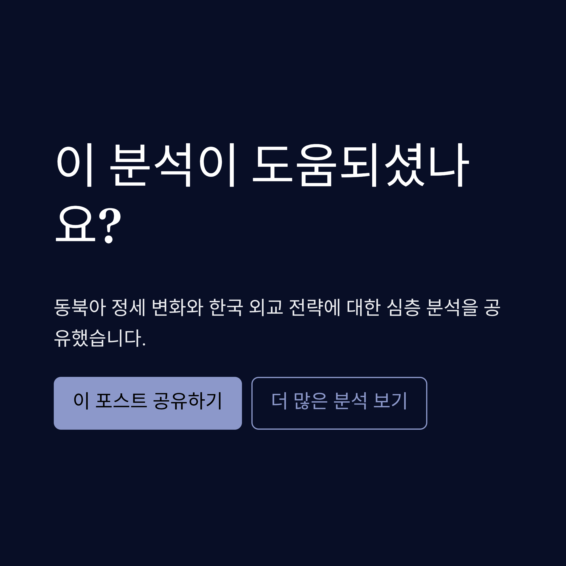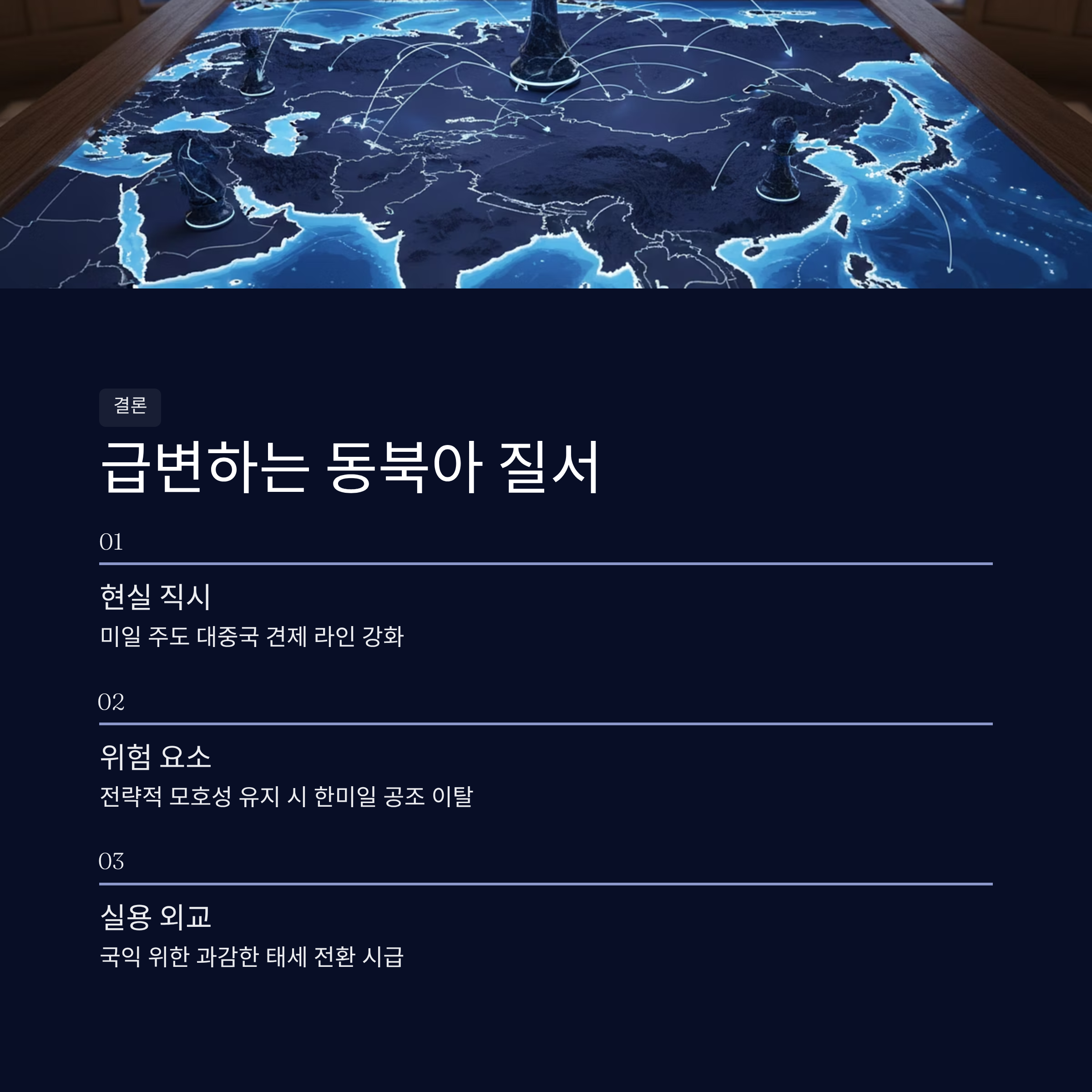 - 6. 결론: 급변하는 동북아 질서, 한국 외교의 전략적 선택과 제언