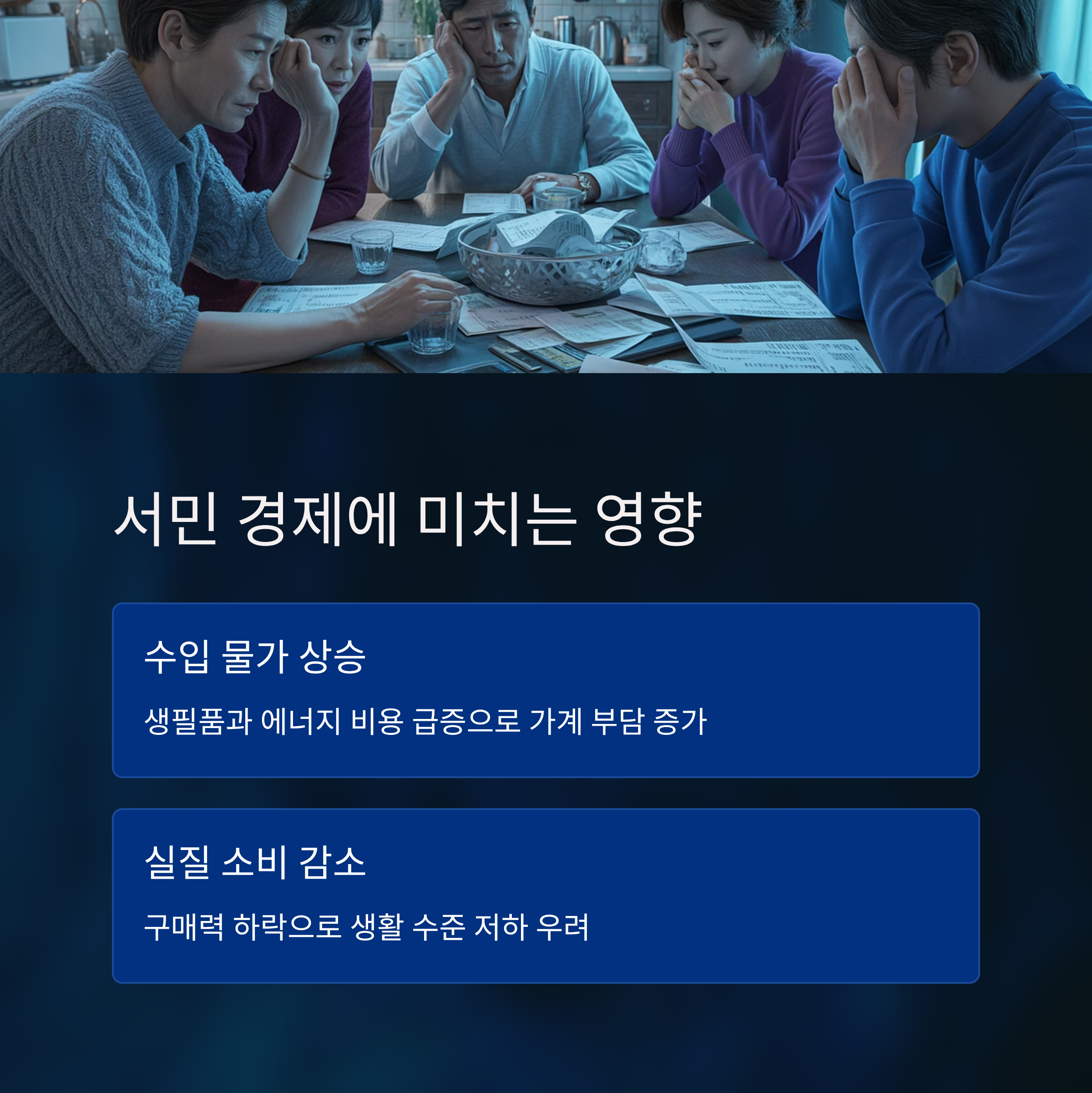 | A. 환율 상승으로 수입 물가가 올라 생필품과 에너지 비용이 증가하게 됩니다. 이는 가계 부담을 늘리고 실질 소비 여력을 감소시킵니다. |