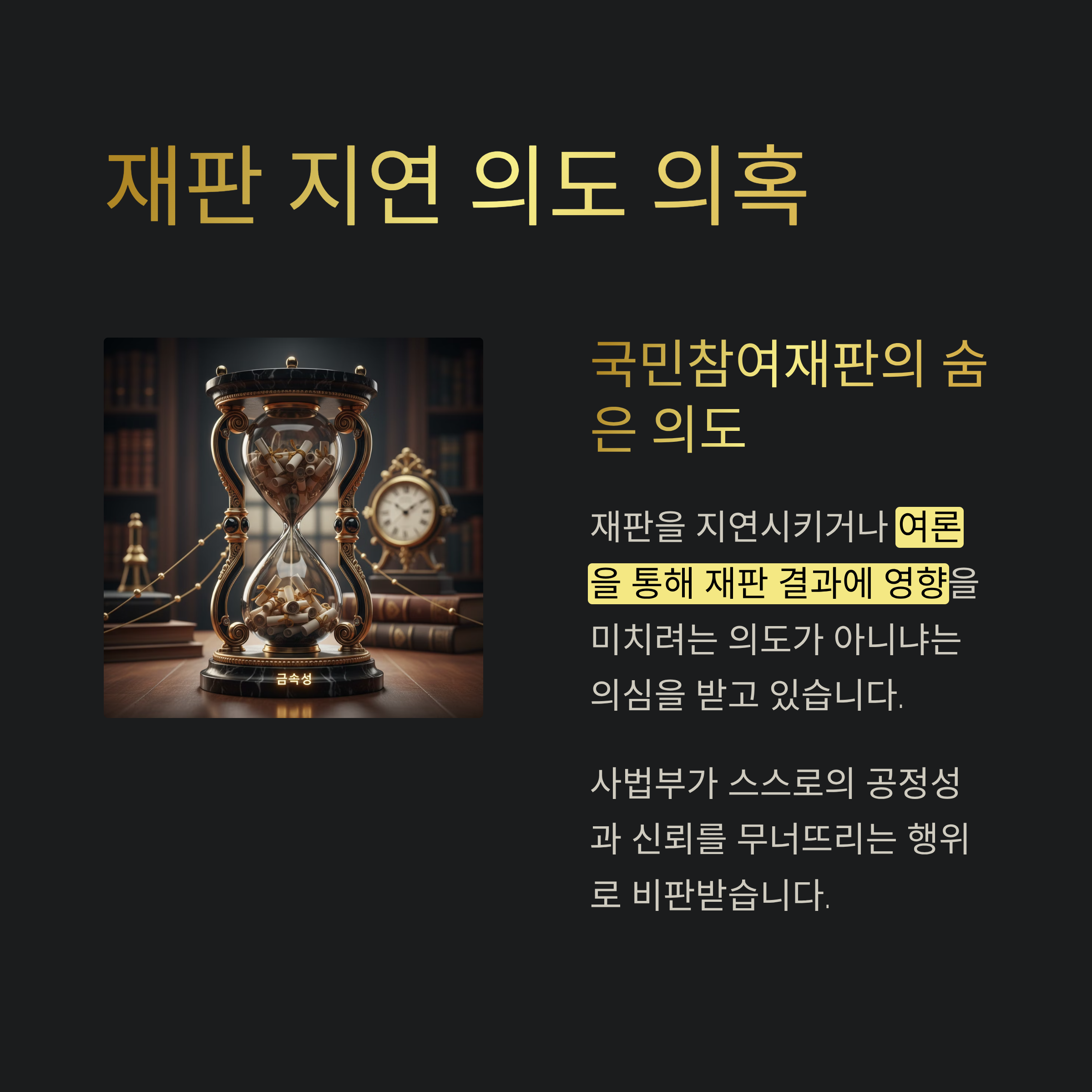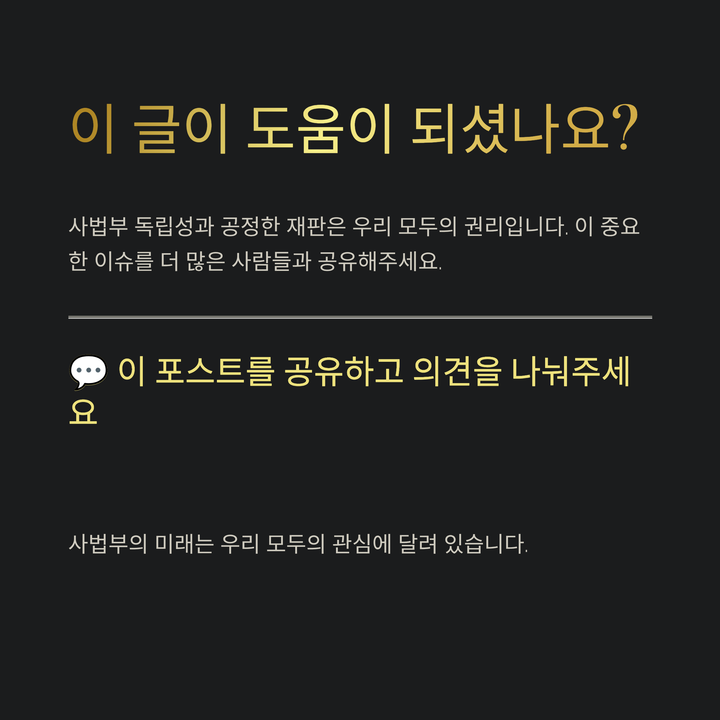 이는 사법부가 스스로의 공정성과 신뢰를 무너뜨리는 행위로, 국민들에게 사법 시스템 전체에 대한 불신을 키우는 결과를 초래하고 있습니다.