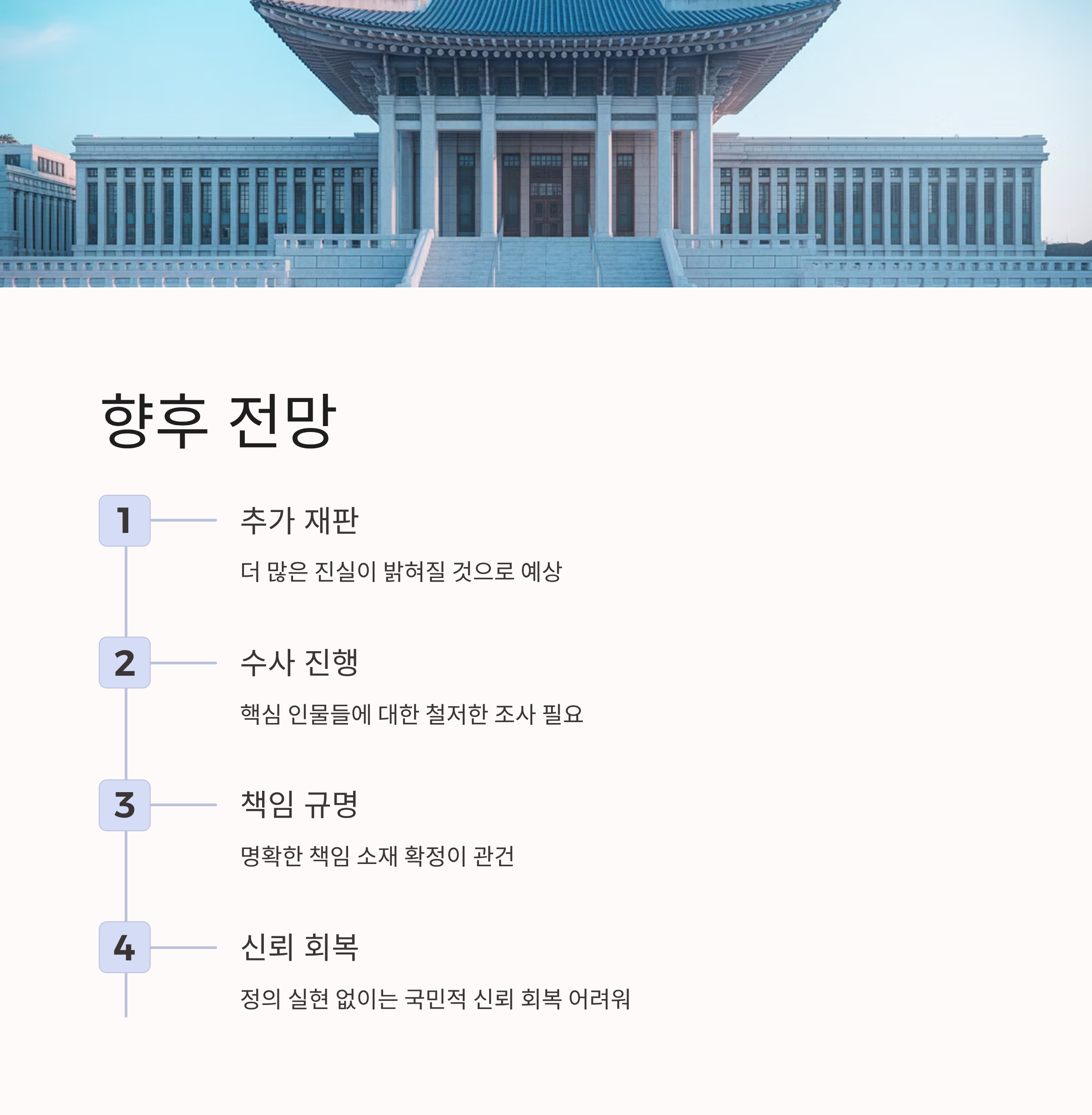향후 이 사건은 추가적인 재판과 수사를 통해 더 많은 진실이 밝혀질 것으로 보입니다. 그러나 명확한 책임 규명과 정의 실현이 없이는 국민적 신뢰를 되찾기 어려울 것입니다.