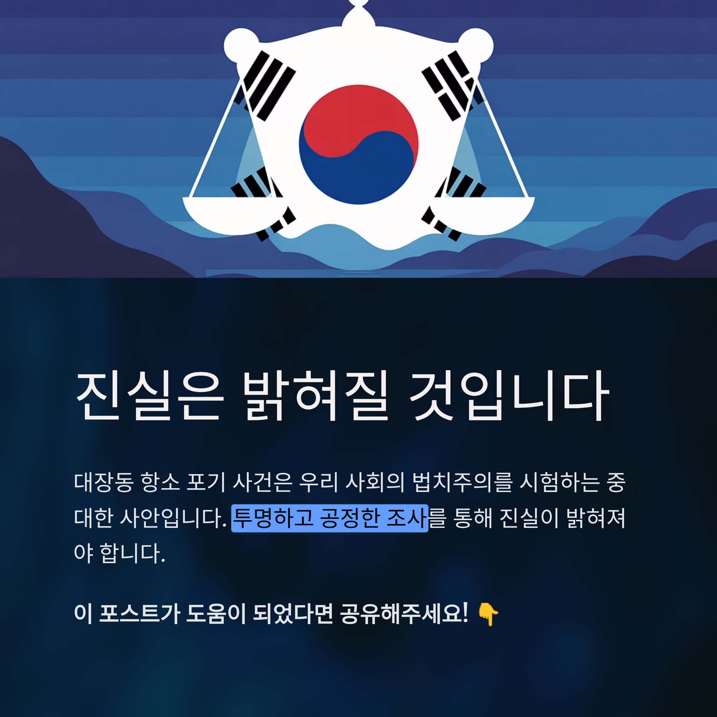이번 대장동 항소 포기 사건은 정치, 사법, 행정 분야가 복잡하게 얽힌 문제로, 단순히 특정 기관 간의 불화로 치부할 수 없는 중대한 사안입니다. 법무부 차관의 발언 및 검찰 내부의 갈등은 정부의 사법 체계 개입 논란으로 직결되었습니다. 이와 함께 사법부 독립성의 중요성과 민주적 의사결정 구조의 투명성 문제가 제기되고 있습니다.