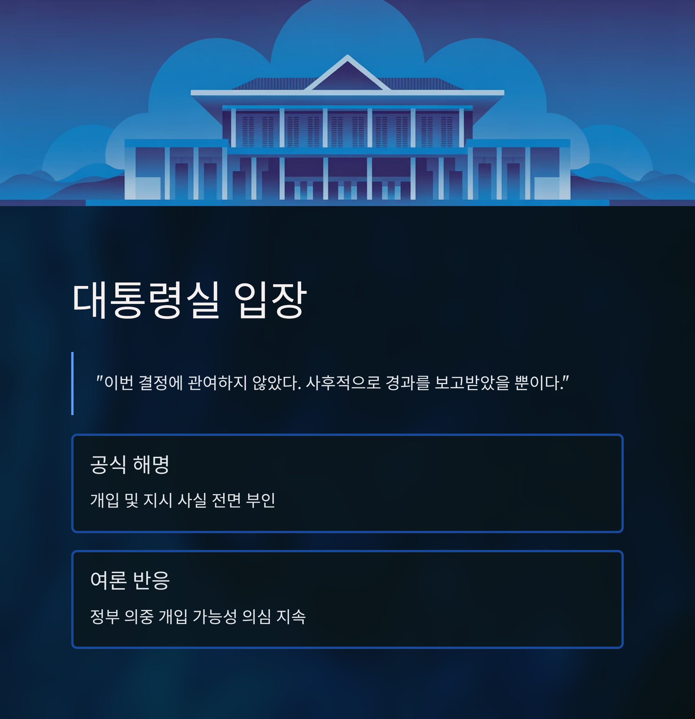 - 대통령실은 "이번 결정에 관여하지 않았다"고 발표하였으나, 신뢰 회복에는 시간이 필요.